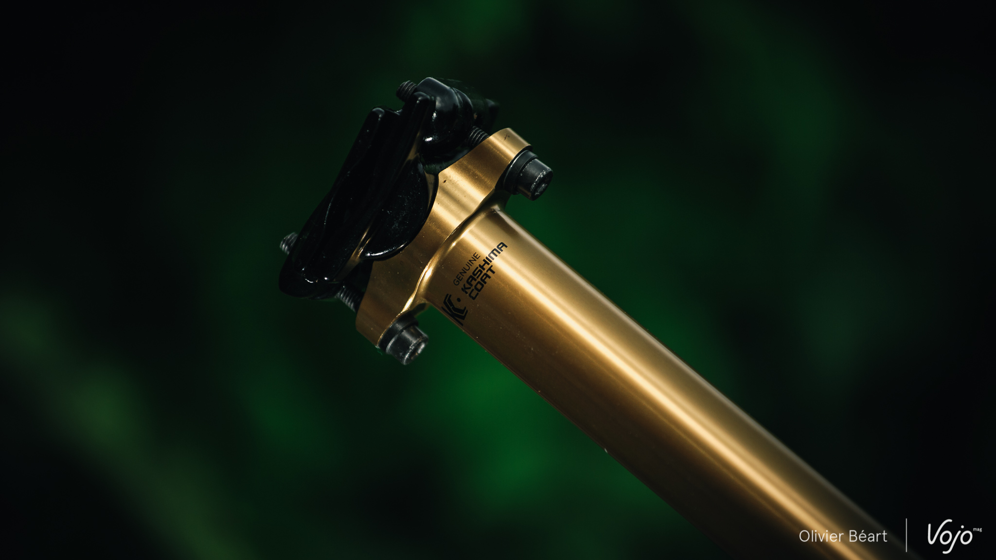 Au niveau de la tige de selle elle-même, on note la présence d’un très léger jeu sur la Fox Transfer, contrairement à la Doss qui n’en n’avait aucun. Mais c’est vraiment minime et, s’il n’augmente pas avec le temps, c’est imperceptible. Nous verrons lors de notre test longue durée ce qu’il en est de ce point précis, mais on ne se fait pas trop d’inquiétudes.