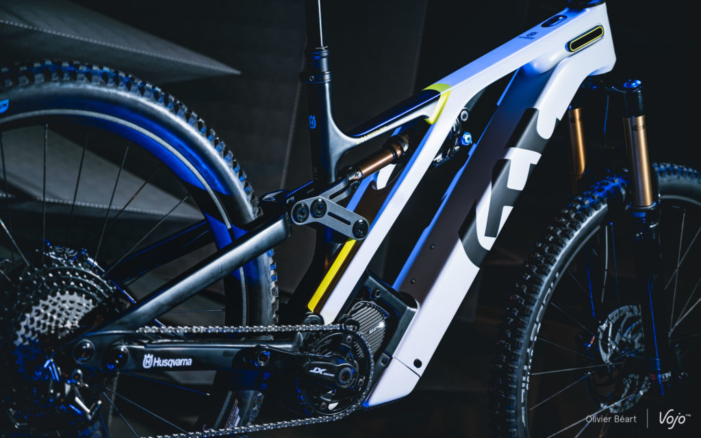 Pour concrétiser ce travail sur les formes, pour le poids (annoncé à 3,6kg pour le cadre nu et 22kg pour le modèle haut de gamme complet) et pour la rigidité, Husqvarna a eu recours au carbone. Mais une déclinaison alu au design proche mais légèrement différent devrait suivre au prochain millésime.