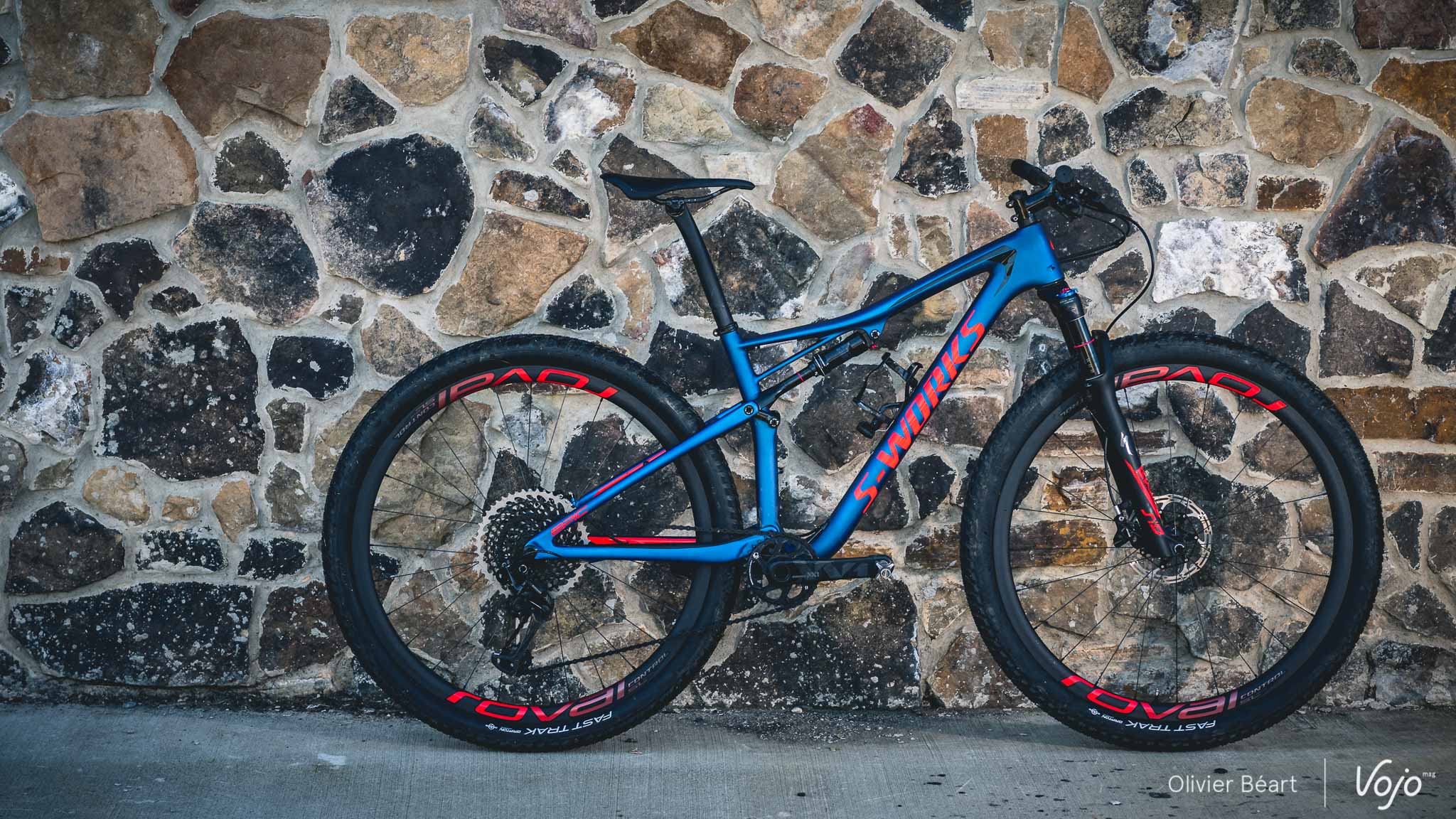 Il est équipé d’un groupe Sram XX1 Eagle, de freins Sram Level, d’une fourche RockShox SID Brain World Cup, des nouvelles roues Roval Control SL avec jantes en 25mm de large, de pneus Fast Track Gripton Grid en 2.3 devant et 2.1 derrière, ainsi que d’une tige de selle et d’un cintre carbone.