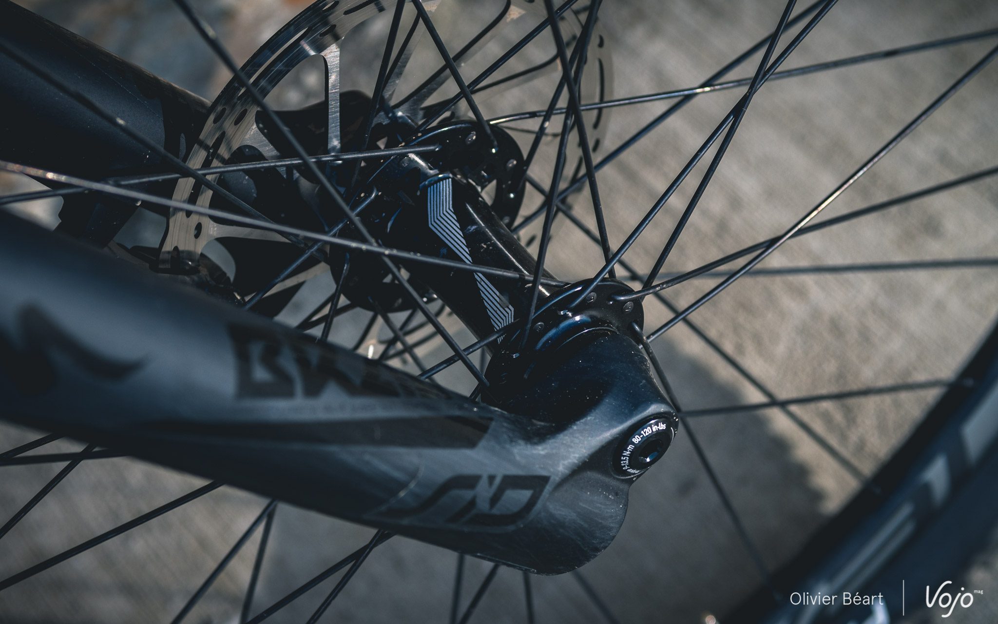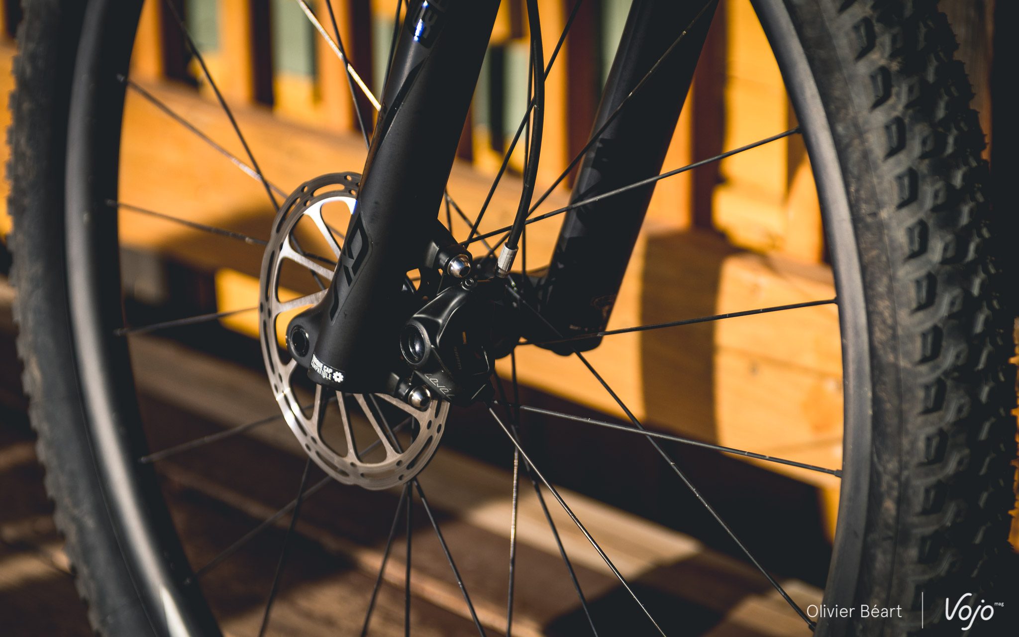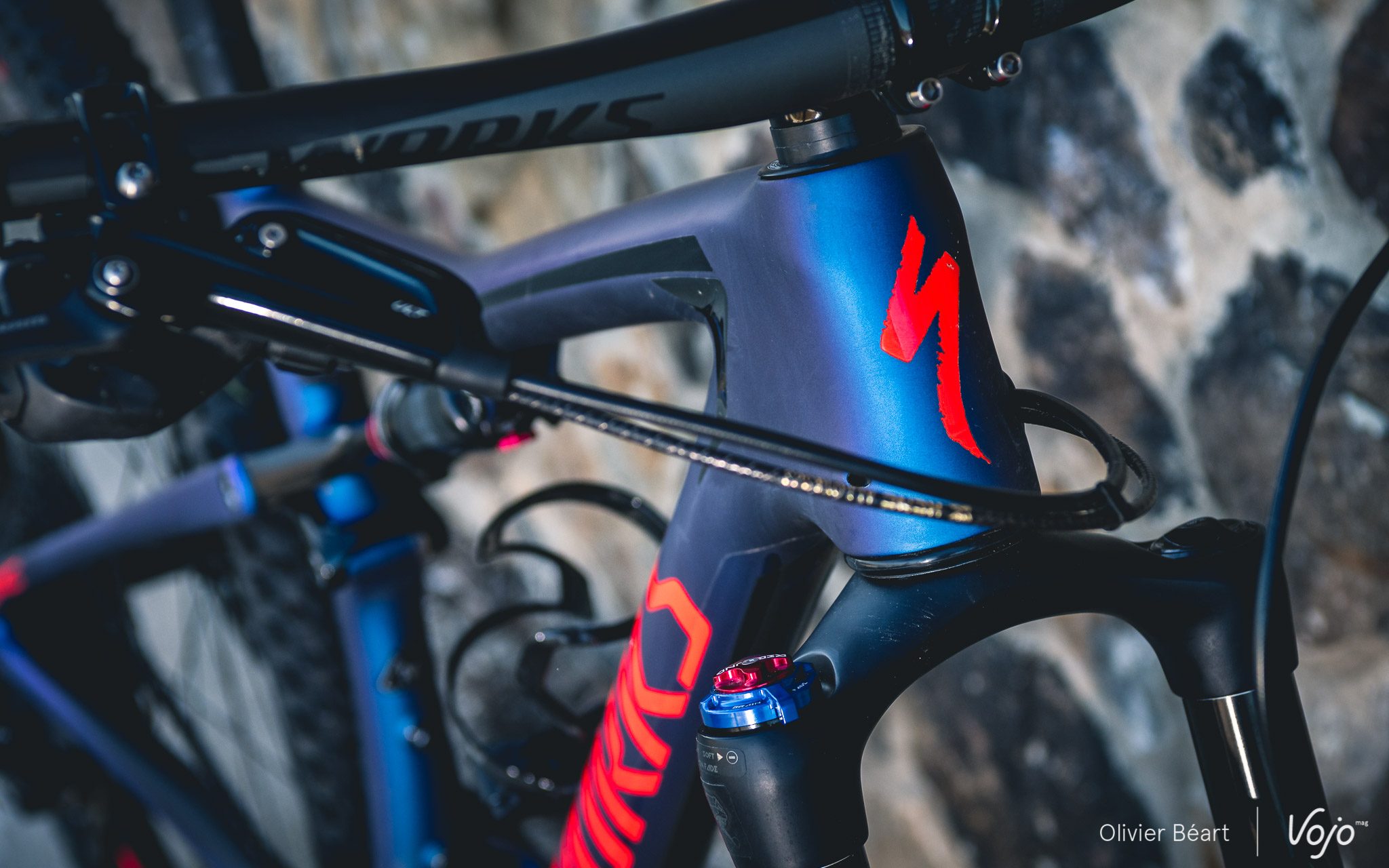 Malgré le changement de géométrie, Specialized a souhaité conserver les mêmes emplacements pour les points d’appui ainsi que pour les axes de roues. Ainsi, le nouvel Epic utilise une fourche RockShox SID avec un déport spécifique de 42mm ; une valeur qu’on retrouvait habituellement sur des vélos équipés de roues de plus petit diamètre et de plus de débattement. Cela permet de ménager la chèvre et le chou et procurant à l’Epic de la stabilité grâce à l’angle de direction plus couché, tout en préservant la vivacité et la maniabilité, notamment en montée dans les virages serrés.