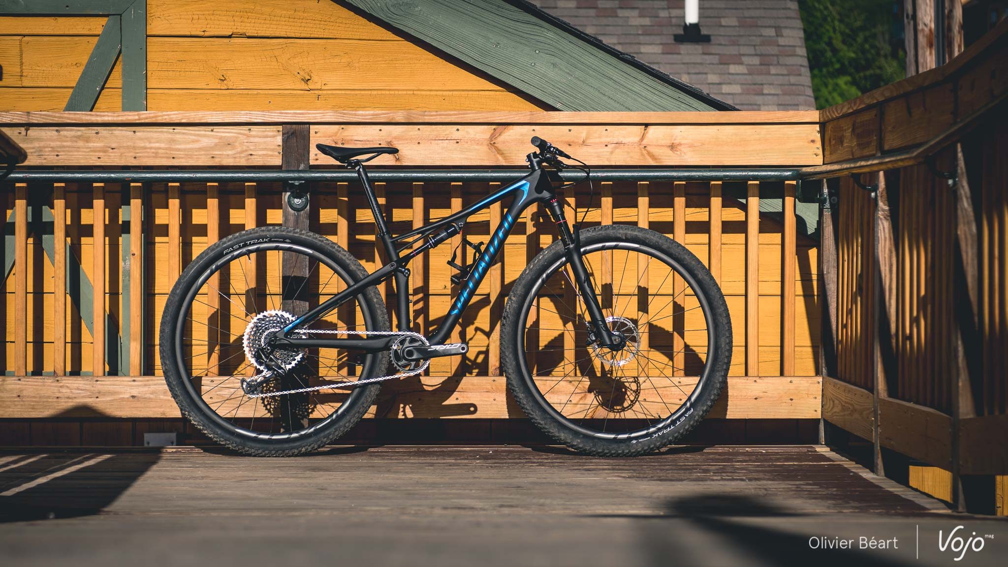 Son prix est de 8999€ (contre 8499€ pour la précédente version). Il existe également dans une autre couleur, plus sobre, ainsi qu’en montage Shimano Di2 (mais toujours en mono-plateau… et couplé à une cassette Sram XX1 11 vitesses en 10/42 dents !) avec freins Shimano XTR Race et pédalier Race Face Next. Il est lui affiché à 9999€ (tarif inchangé). Il sera aussi proposé en kit cadre à 5299€ ! Ok, il y a la fourche et la tige de selle mais voilà un tarif ultra dissuasif qui montre que la marque préfère vendre des vélos complets.
