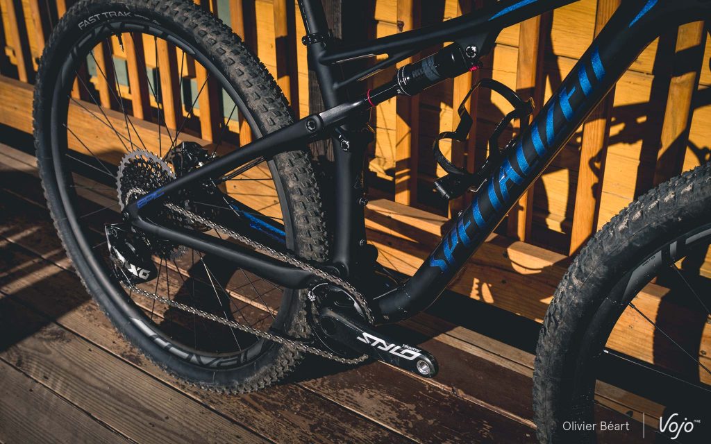 La transmission est en Sram XO1 Eagle avec pédalier Stylo carbone, les freins sont des Sram Level TLM et la fourche une SID Brain avec pivot alu, alors que les roues sont de nouvelles Roval Control Pro en carbone (basées sur les jantes des anciennes Roval Control SL, elles sont réservées à ce modèle et non disponibles séparément) avec jantes en 22mm de largeur interne. Le prix est de 6999€ (inchangé) et il est disponible dans une seule couleur.