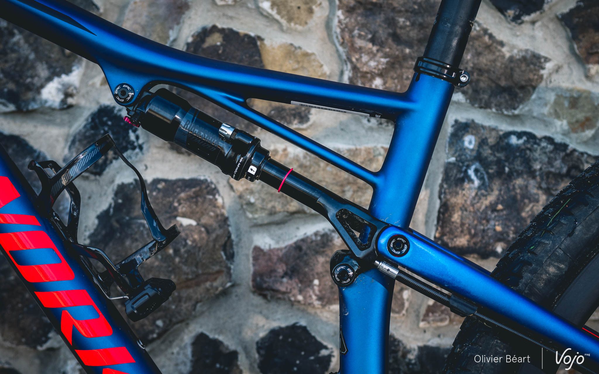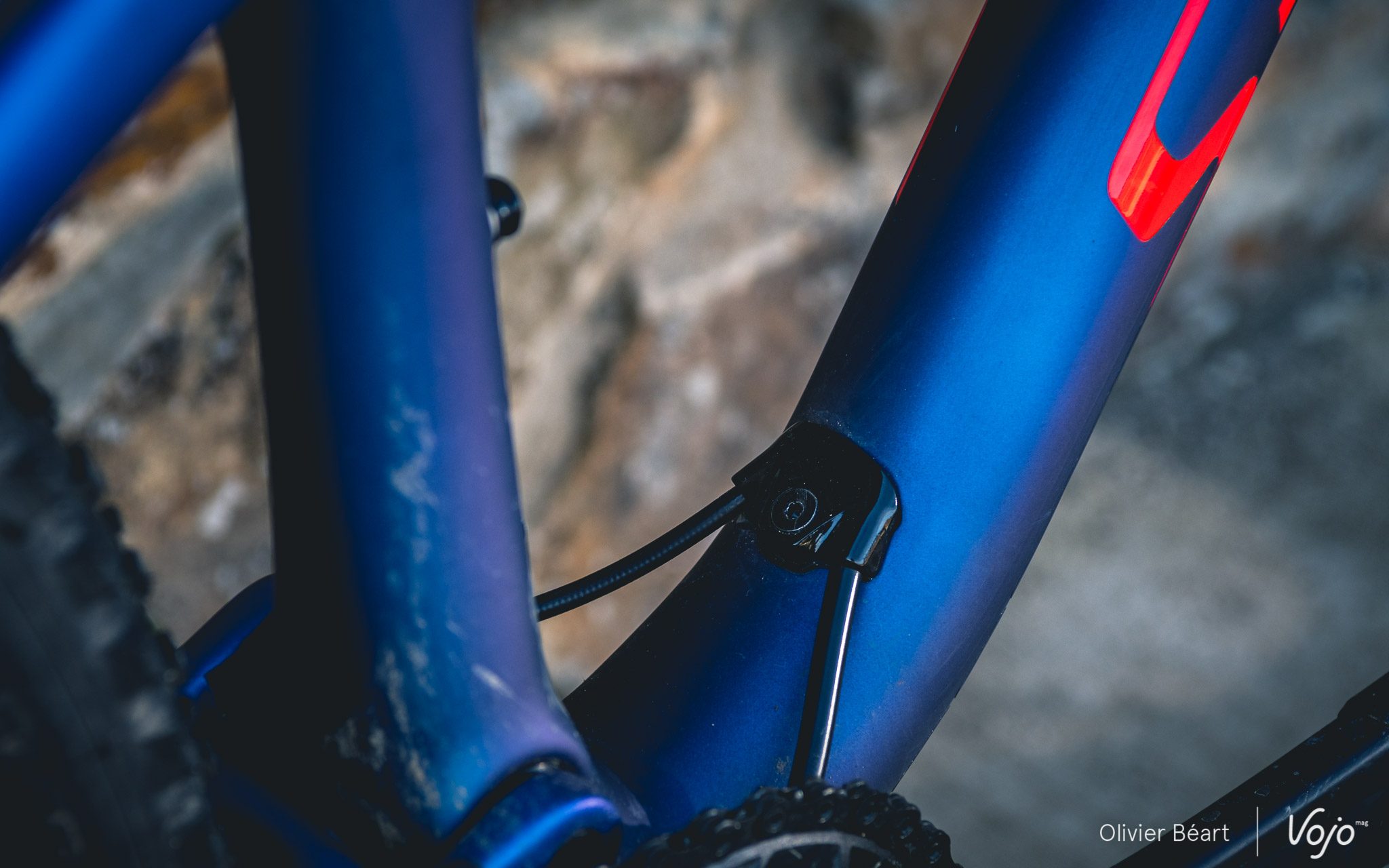 Malgré une raideur légèrement supérieure qui incitera à gonfler l’amortisseur avec quelques PSI de moins, les haubans très aplatis de l’Epic aluminium permettent d’assurer une déformation suffisante pour se passer de point de pivot.