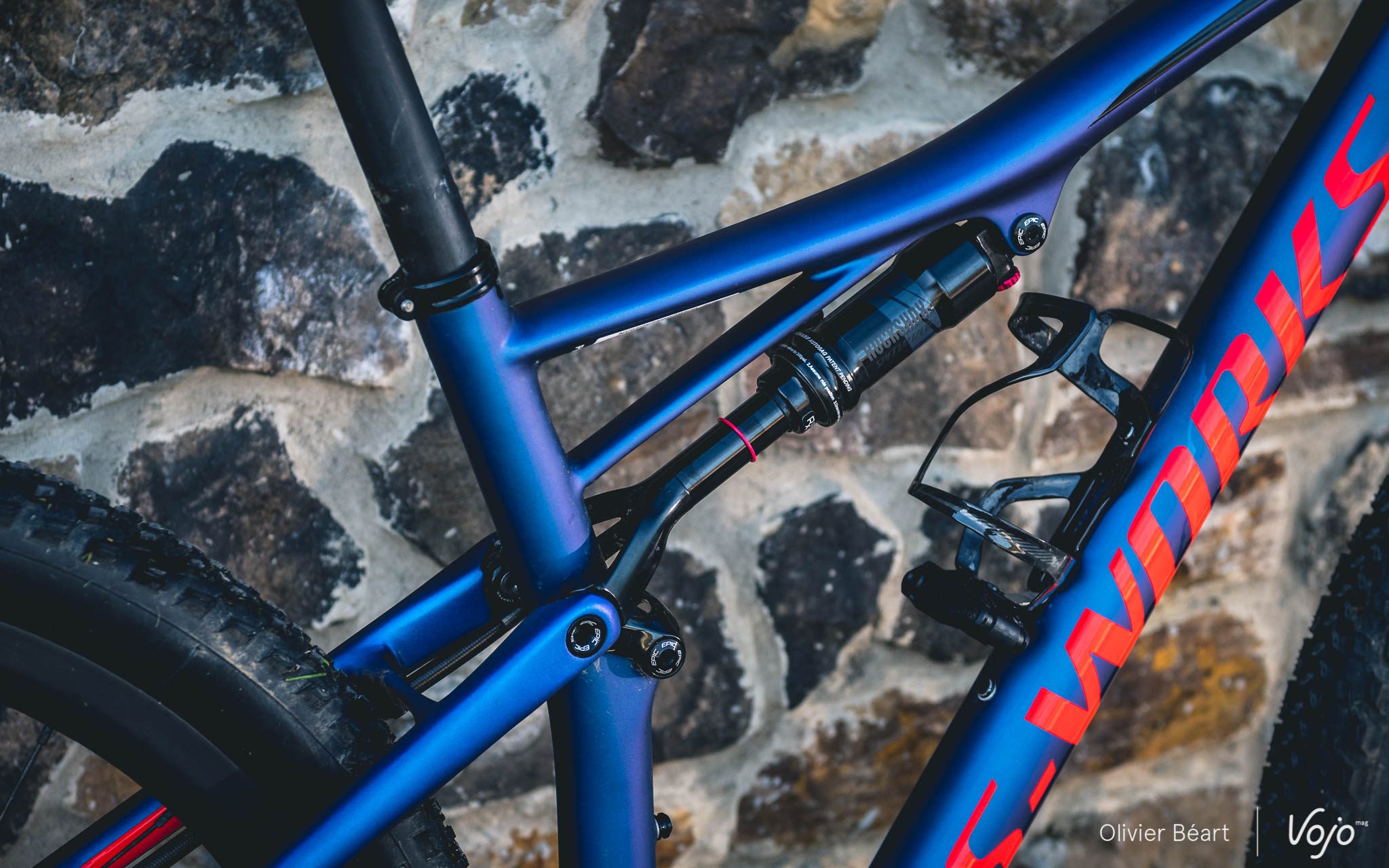 La cinématique de suspension FSR est présente depuis le tout premier full lancé par la marque au milieu des années 90. C’est donc une véritable icône, une signature dont elle n’est pas prête de se passer sur le reste de la gamme car il reste indispensable sur les plus gros débattements.