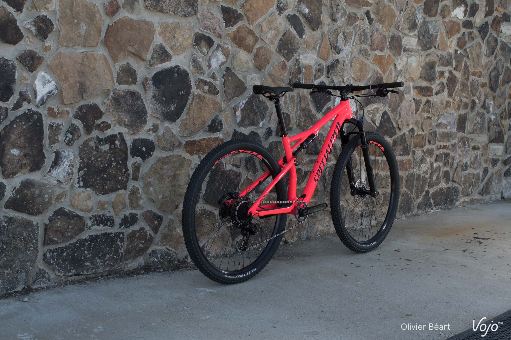 Il est équipé comme le Comp Carbon en Sram GX 11 vitesses et il sera également disponible dans cette autre couleur noir/rouge en plus d’un bleu ciel/orange très tendance (le coloris rose profond qui sert à illustrer les détails du bras arrière est une version féminine, la seule en aluminium disponible lors de la présentation). Il sera affiché à 2999€.