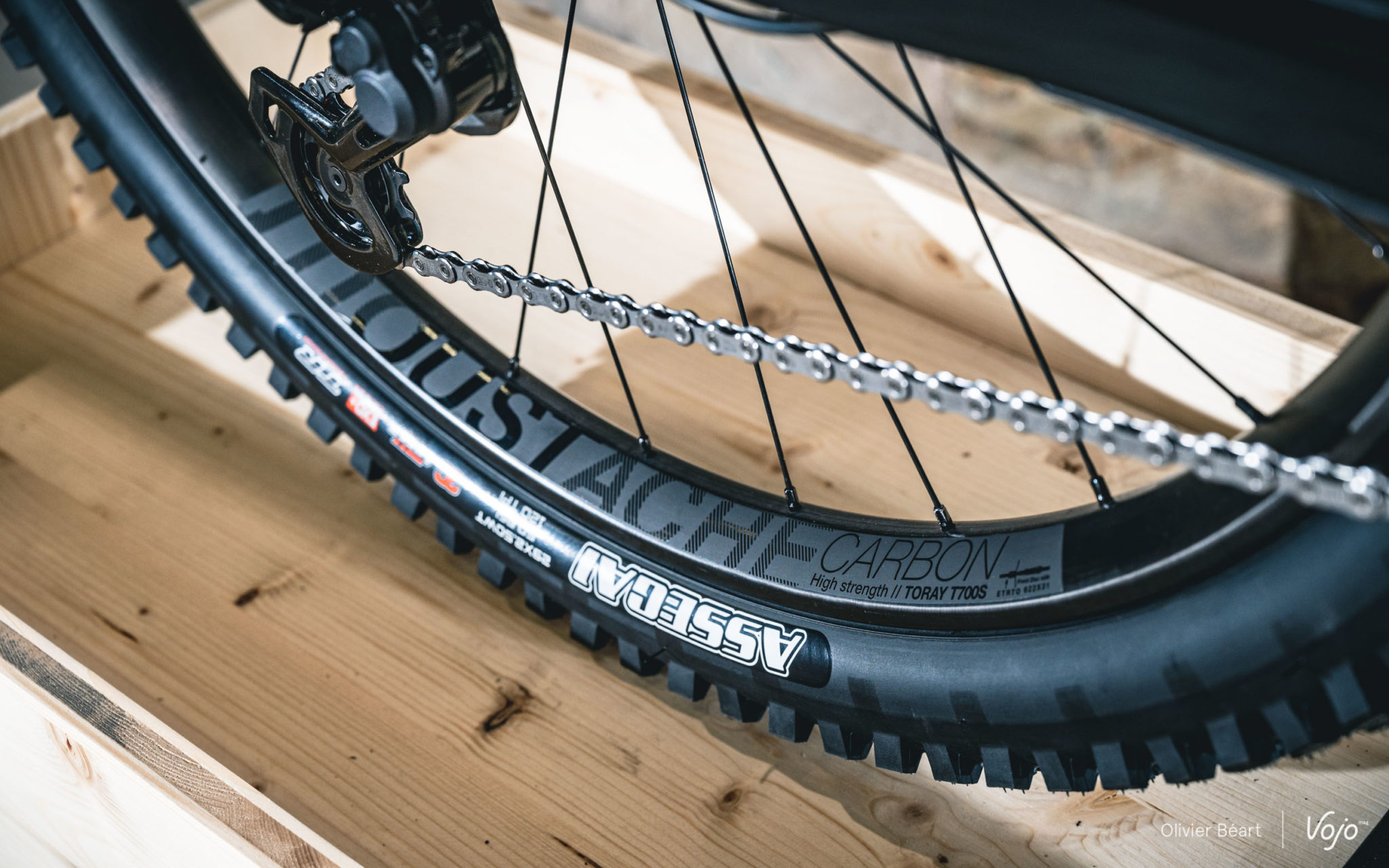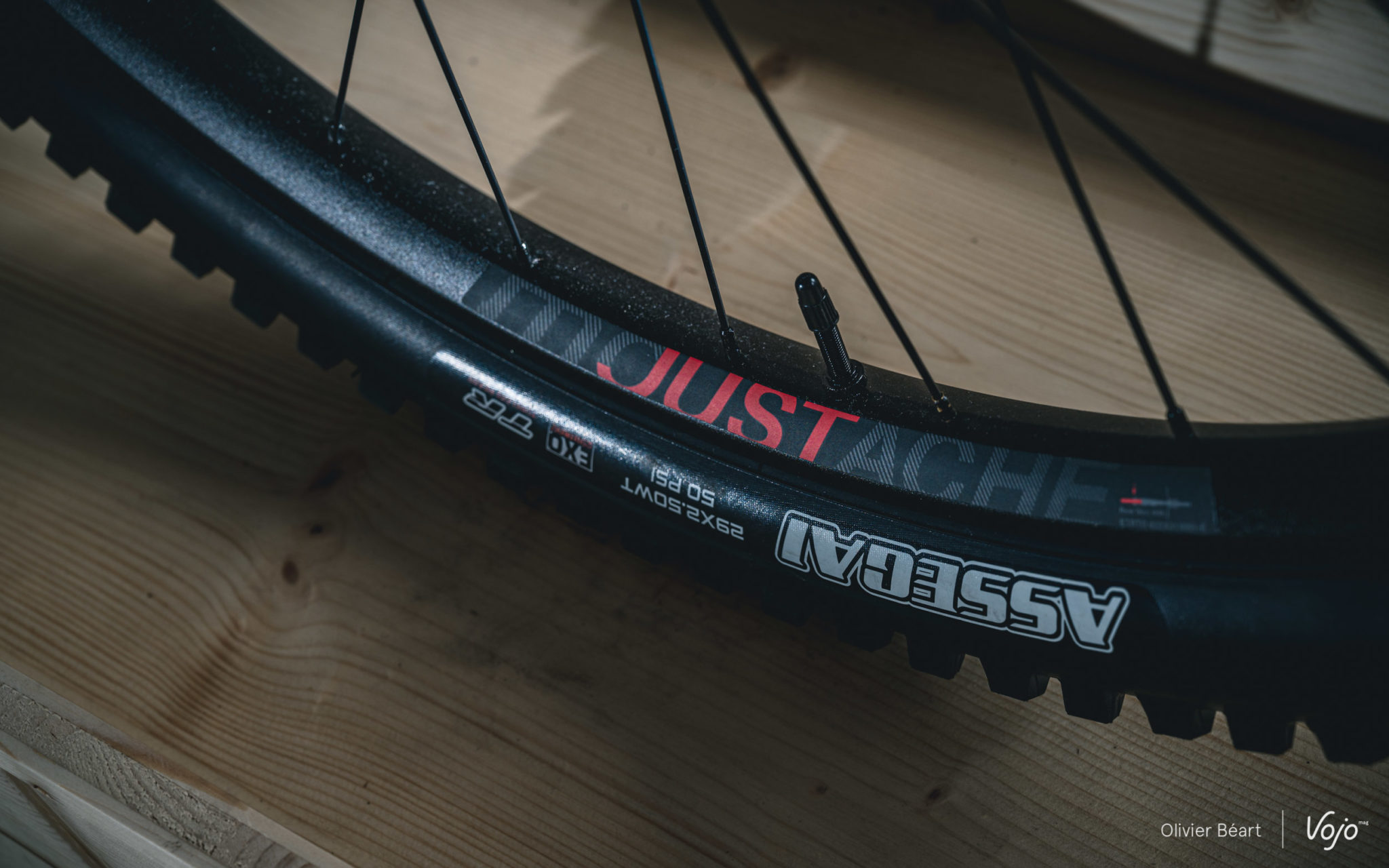 Après de nouveaux essais des différents formats ainsi que de la combinaison 27,5+/29, et suite à d’autres modifications sur le modèle, la marque a décidé de changer de cap : pour la Saison 10, le Moustache Trail passe aux grandes roues à l’avant comme à l’arrière ! Il reçoit des jantes maison en 31mm de large, alu ou carbone selon le niveau de gamme. Le tout monté avec des Maxxis Assegai en section 2.5 Wide Trail et carcasse Exo.