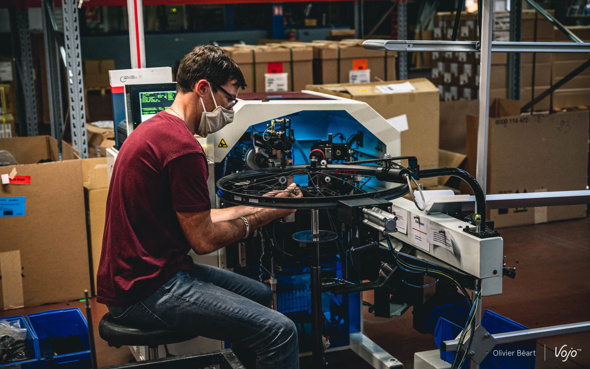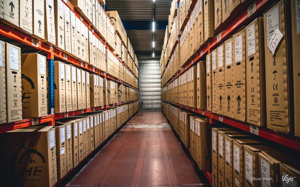 Depuis notre première visite sur le nouveau site l’an dernier, la différence est flagrante. Des 8 postes de montage d’origine sur la partie « Thaon 1 », on est passé à 12 ; et la deuxième partie de l’usine, qui était jusque-là inoccupée, est maintenant entièrement occupée par Moustache. Outre du stockage, on y trouve désormais une deuxième zone d’assemblage, « Thaon 2 », plus flexible et dédiée entièrement au montage des VTT, ainsi qu’au montage des roues qui sera aussi, à terme, entièrement réalisé sur place. Grâce à cela, la marque prévoit de passer d’une production de 45 000 vélos par an à… 60 000 dès la saison à venir !
