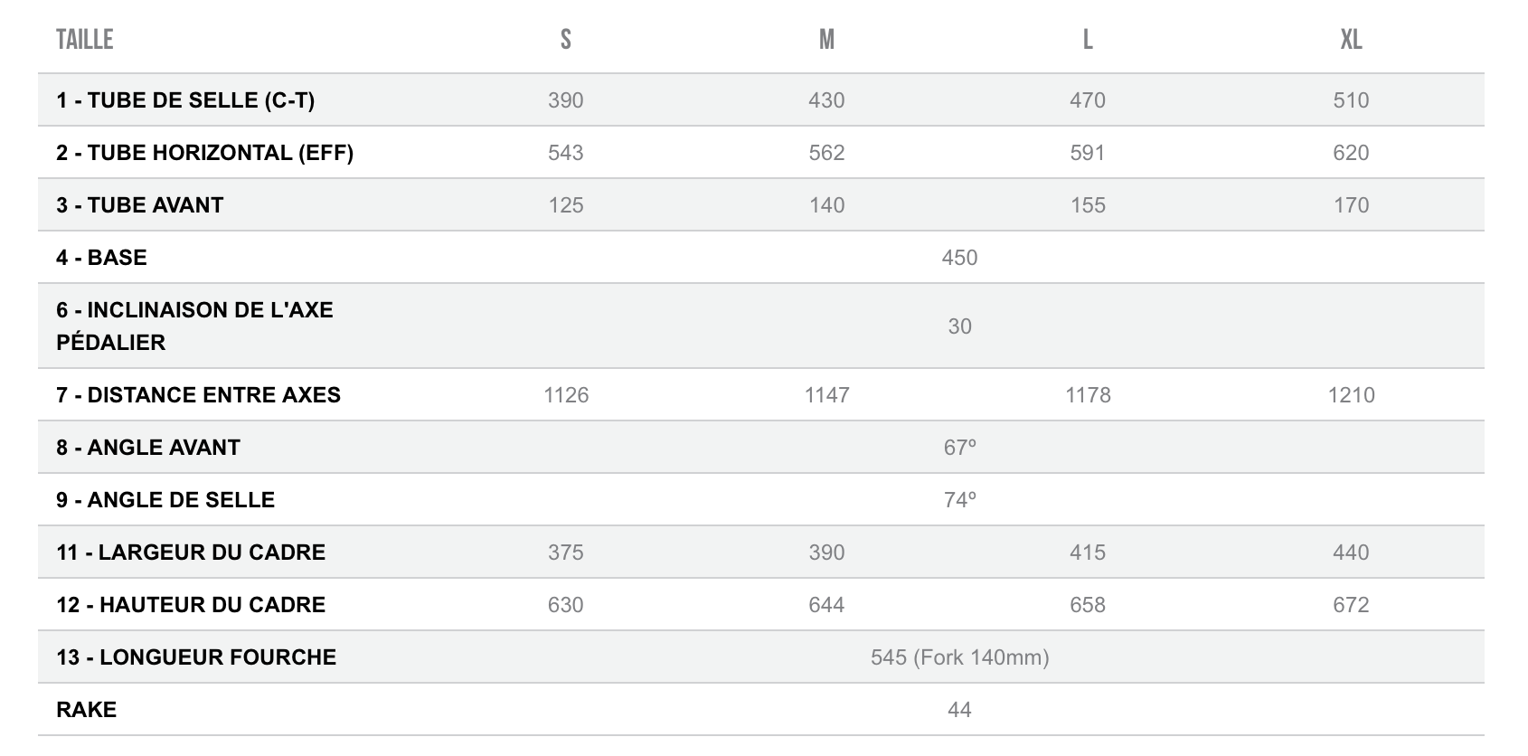 Géométrie et tailles de roues