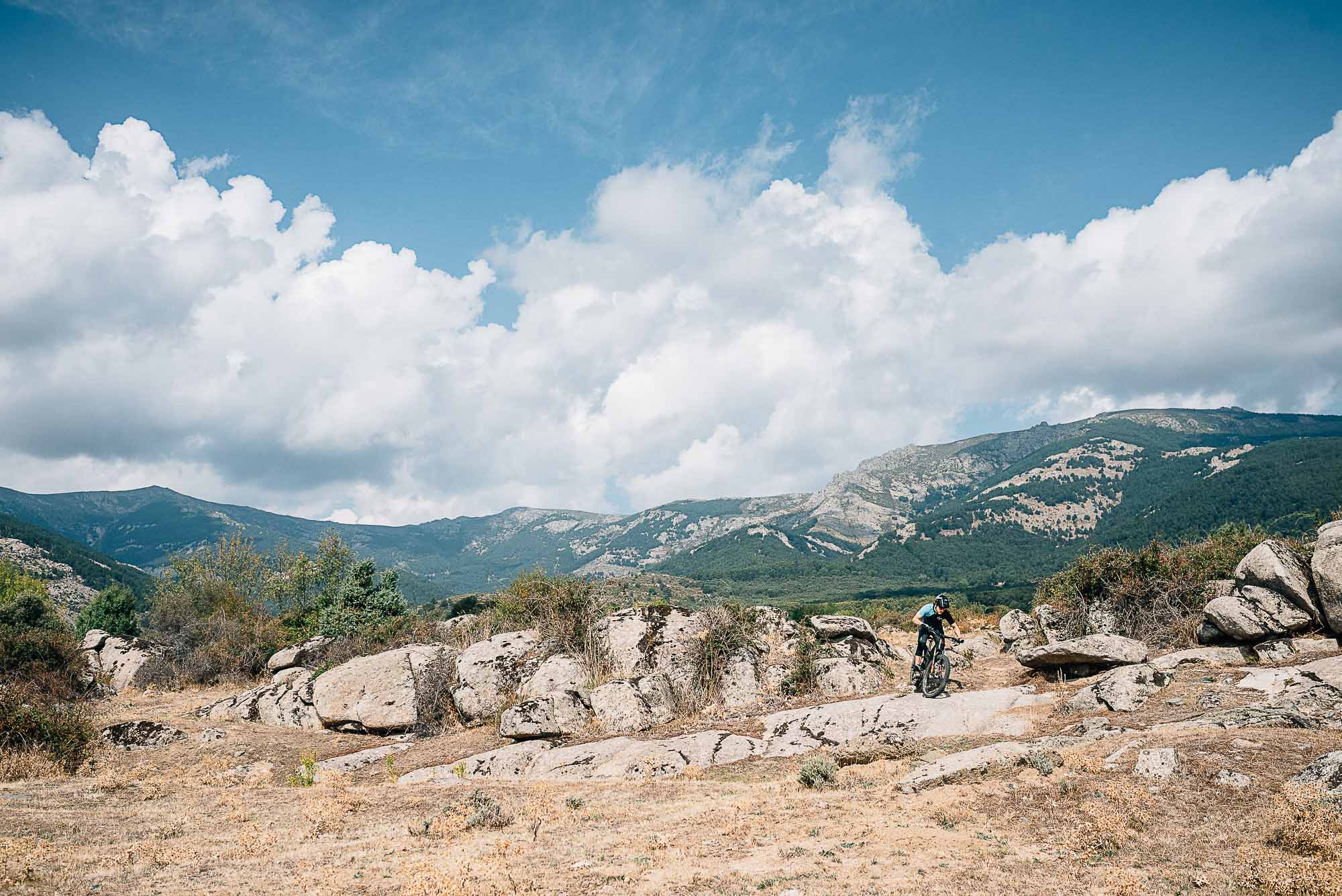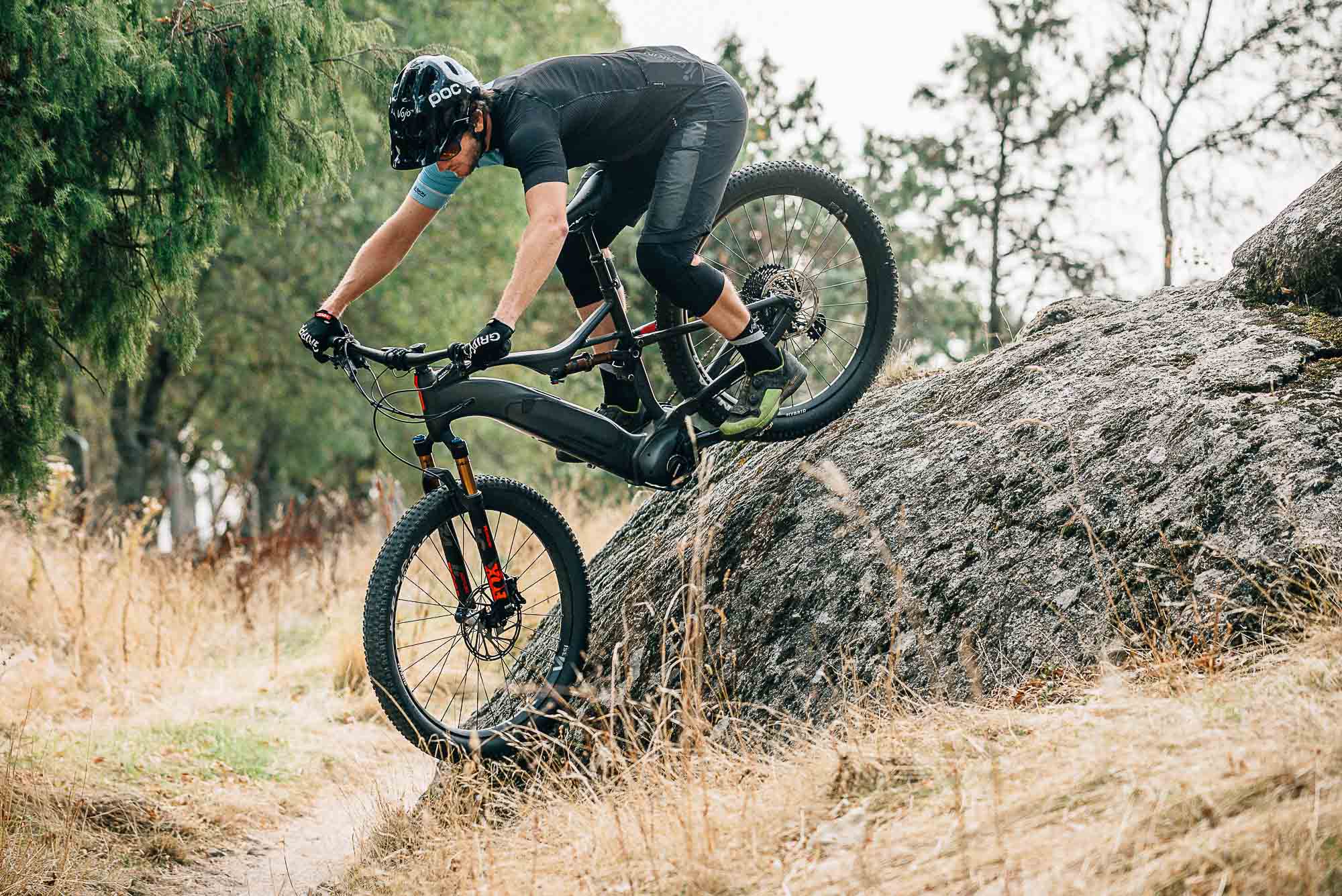 Dans la longue montée qui nous permet de rejoindre le départ des portions descendantes, c’est une fois de plus l’équilibre de la position qui séduit. Les appuis sont naturels et on grimpe facilement, sans chercher à faire le petit fou. Quand on aborde un passage plus raide et technique par contre, le Wild FS se réveille et se montre plus vif, ce qui est bien agréable pour se faufiler entre les obstacles. Les roues de 27,5 Plus aident bien aussi au niveau du grip. Quant au moteur Shimano, il était parfaitement réglé sur notre exemplaire de test (ce qui n’a pas toujours été le cas sur les premières présentations auxquelles nous avons assisté) et nous avons pu pleinement profiter de sa force tranquille, principalement en mode Trail.