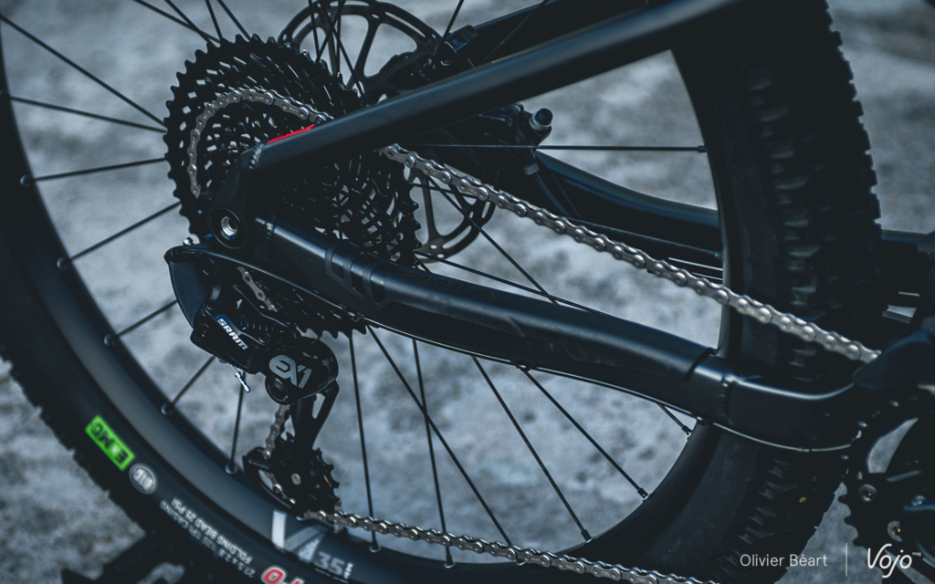 Au niveau des équipements, Orbea a aussi joué la carte du spécifique ebike sur plusieurs points, comme au niveau des roues (DT série Hybrid), des pneus (Kenda avec carcasse spécifique) ou encore de la transmission (Sram EX1 sur le haut de gamme) et des freins (Sram Guide RE, sur le haut de gamme à nouveau).