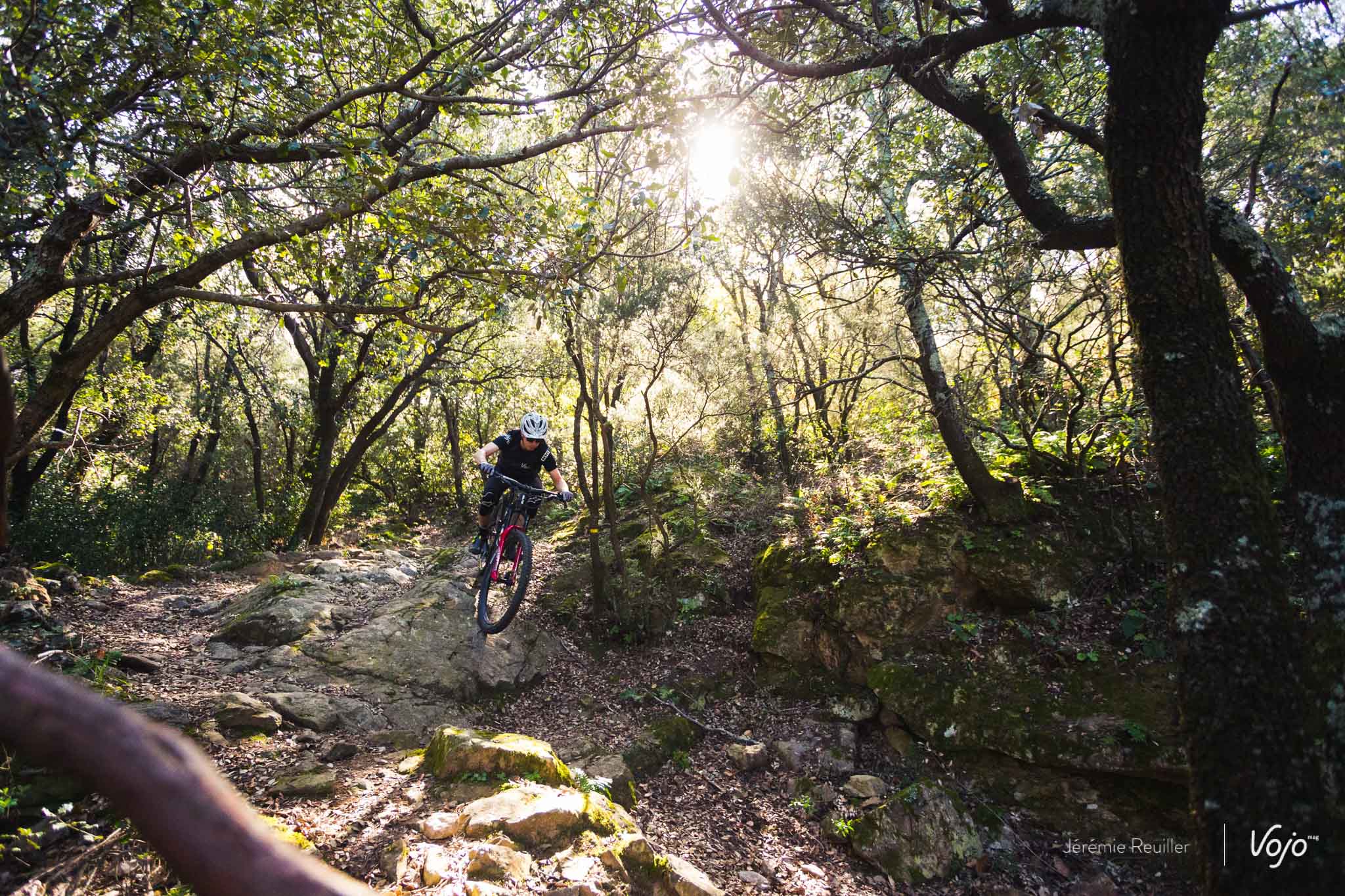 En recevant notre adresse de rendez-vous, difficile de ne pas sourire. Pour découvrir la nouvelle Rockshox Lyrik et l’amortisseur Superdeluxe, nous avons rendez-vous au Cap Néoulous, dans les Pyrénées Orientales. À quelques minutes de Perpignan et à un coup de pédale de l’Espagne, on retrouve Stéphane et France qui sont presque des habitués de Vojo. Ils nous ont déjà accueillis avec deux lecteurs et Sram, à la découverte, humide, de leurs sentiers. On les retrouvait plus tard avec l’équipe Orbea Enduro Team en stage de préparation avant le début de saison.