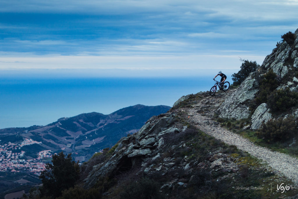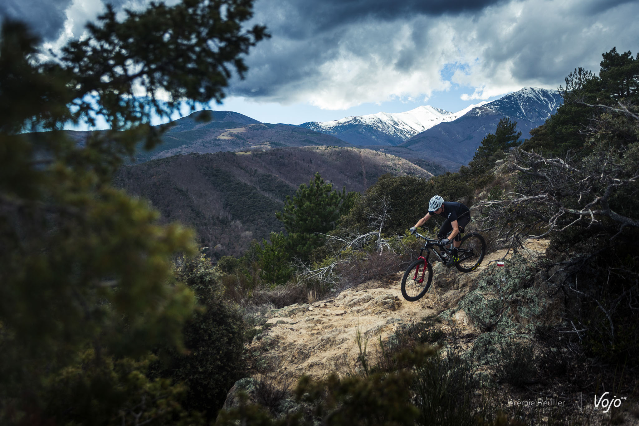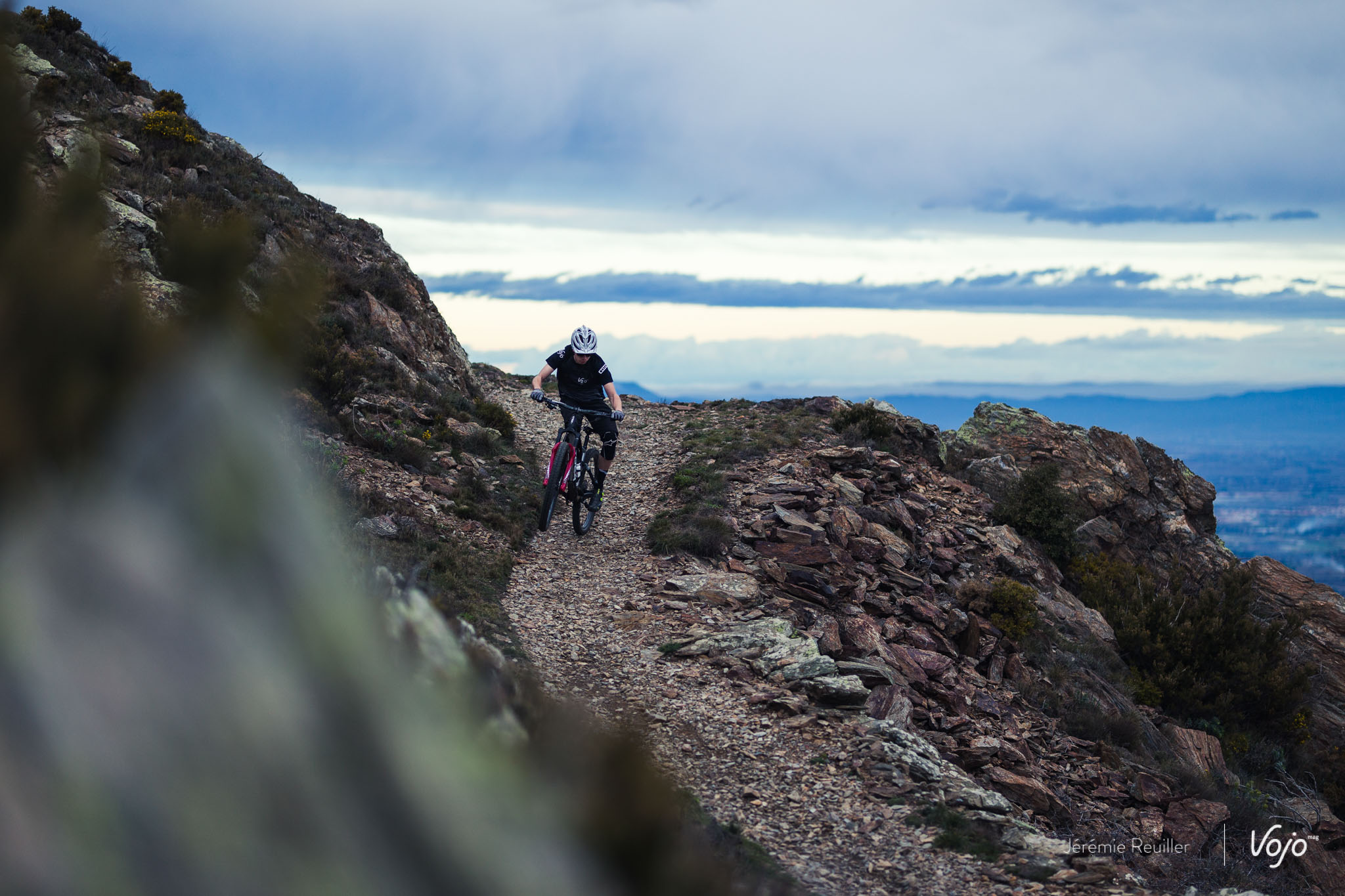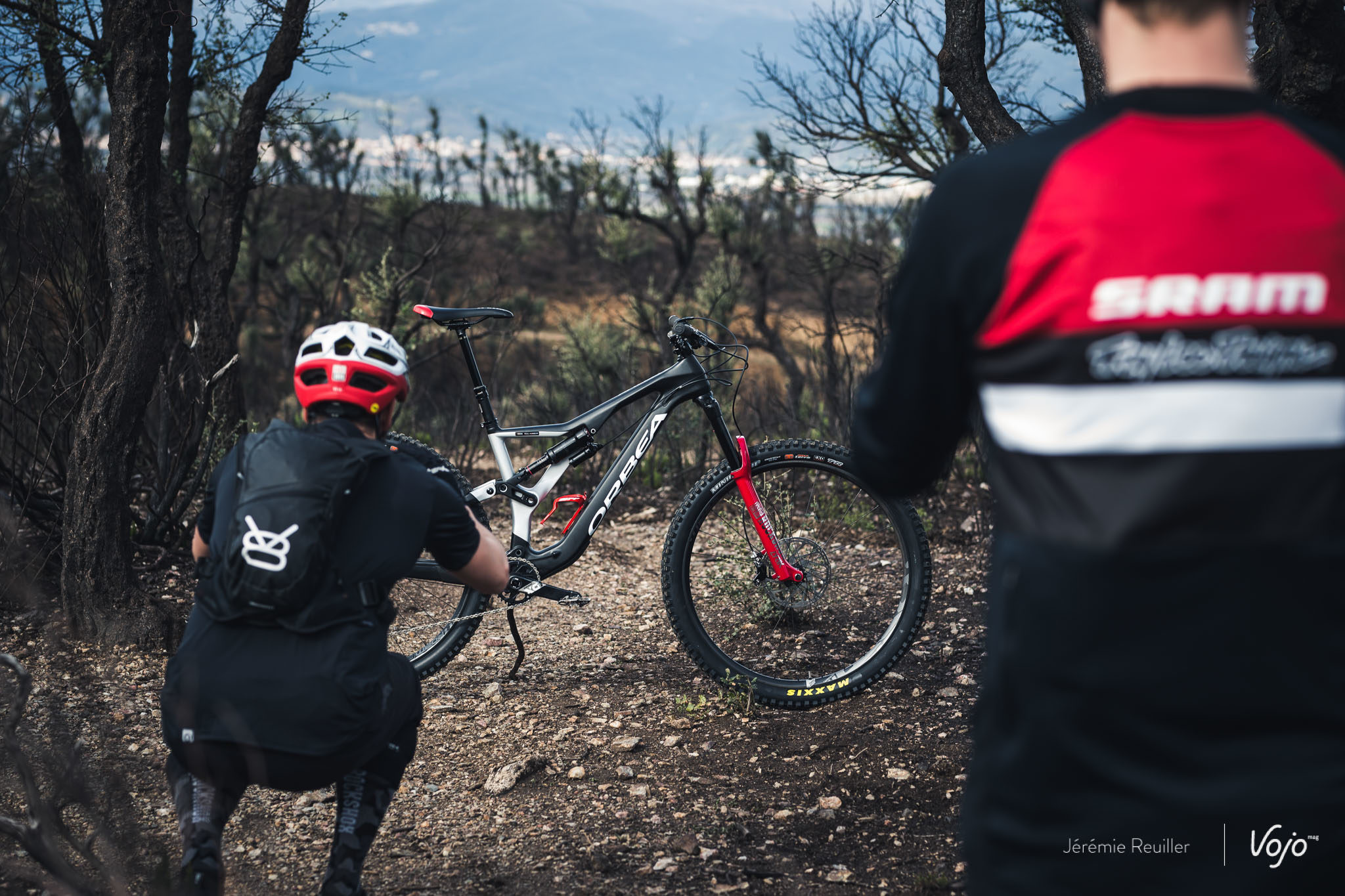 En recevant notre adresse de rendez-vous, difficile de ne pas sourire. Pour découvrir la nouvelle Rockshox Lyrik et l’amortisseur Superdeluxe, nous avons rendez-vous au Cap Néoulous, dans les Pyrénées Orientales. À quelques minutes de Perpignan et à un coup de pédale de l’Espagne, on retrouve Stéphane et France qui sont presque des habitués de Vojo. Ils nous ont déjà accueillis avec deux lecteurs et Sram, à la découverte, humide, de leurs sentiers. On les retrouvait plus tard avec l’équipe Orbea Enduro Team en stage de préparation avant le début de saison.