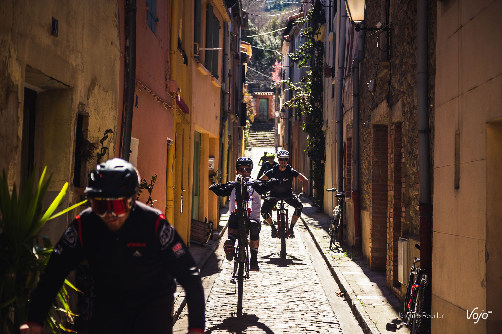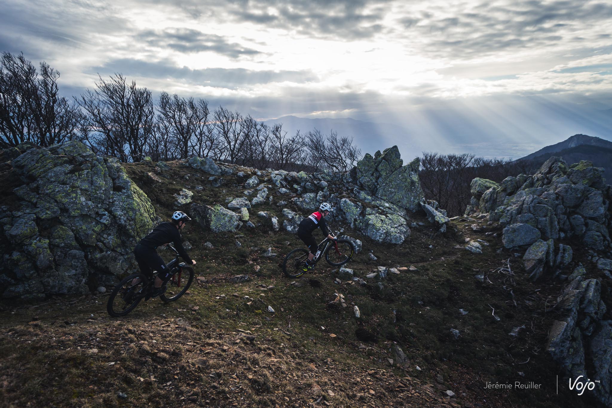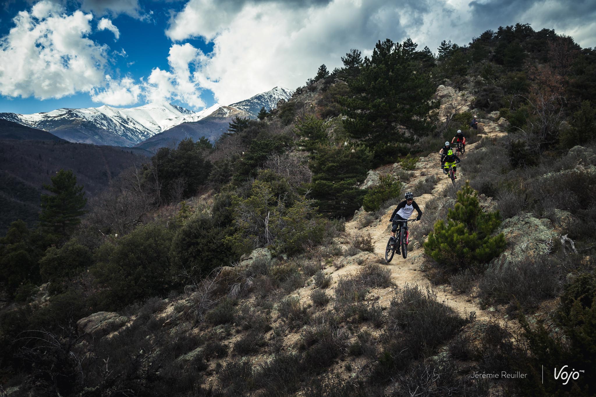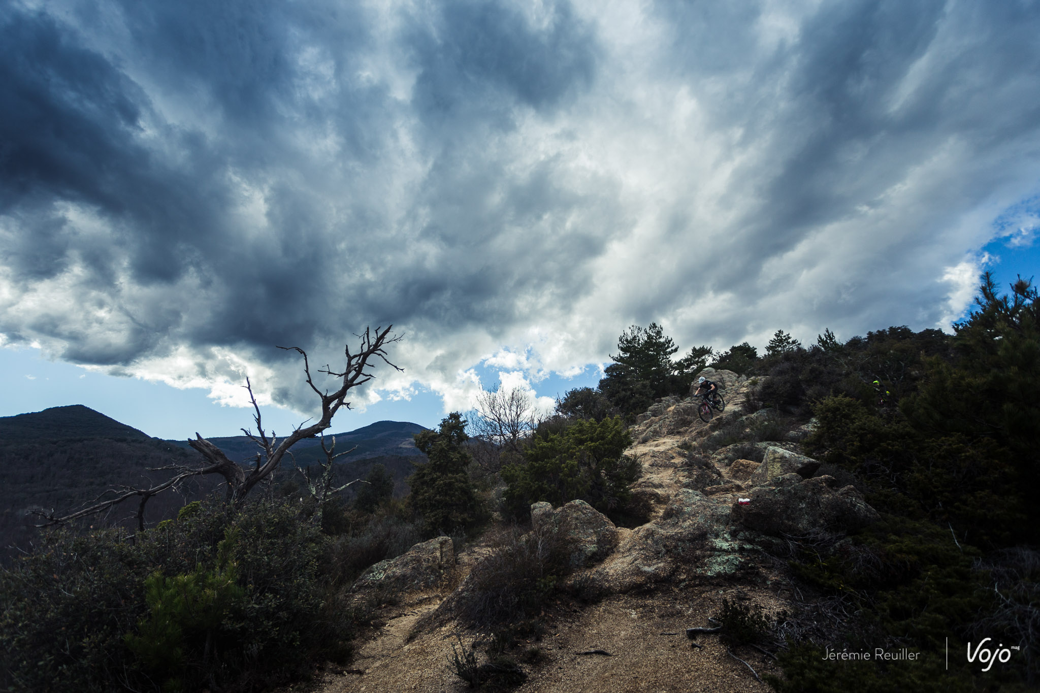 En recevant notre adresse de rendez-vous, difficile de ne pas sourire. Pour découvrir la nouvelle Rockshox Lyrik et l’amortisseur Superdeluxe, nous avons rendez-vous au Cap Néoulous, dans les Pyrénées Orientales. À quelques minutes de Perpignan et à un coup de pédale de l’Espagne, on retrouve Stéphane et France qui sont presque des habitués de Vojo. Ils nous ont déjà accueillis avec deux lecteurs et Sram, à la découverte, humide, de leurs sentiers. On les retrouvait plus tard avec l’équipe Orbea Enduro Team en stage de préparation avant le début de saison.