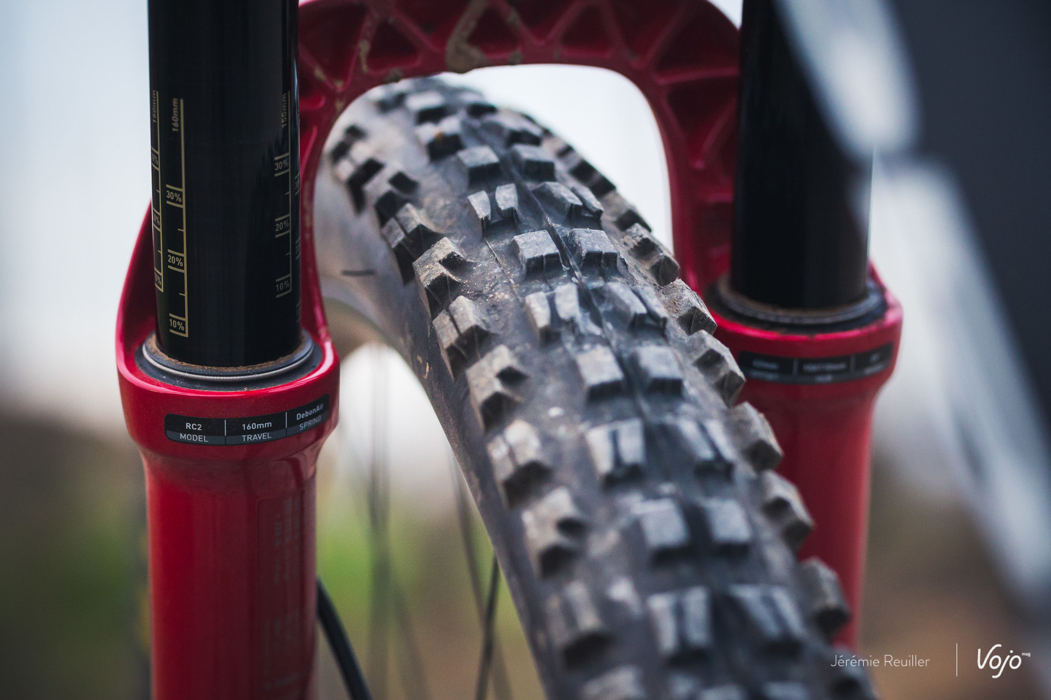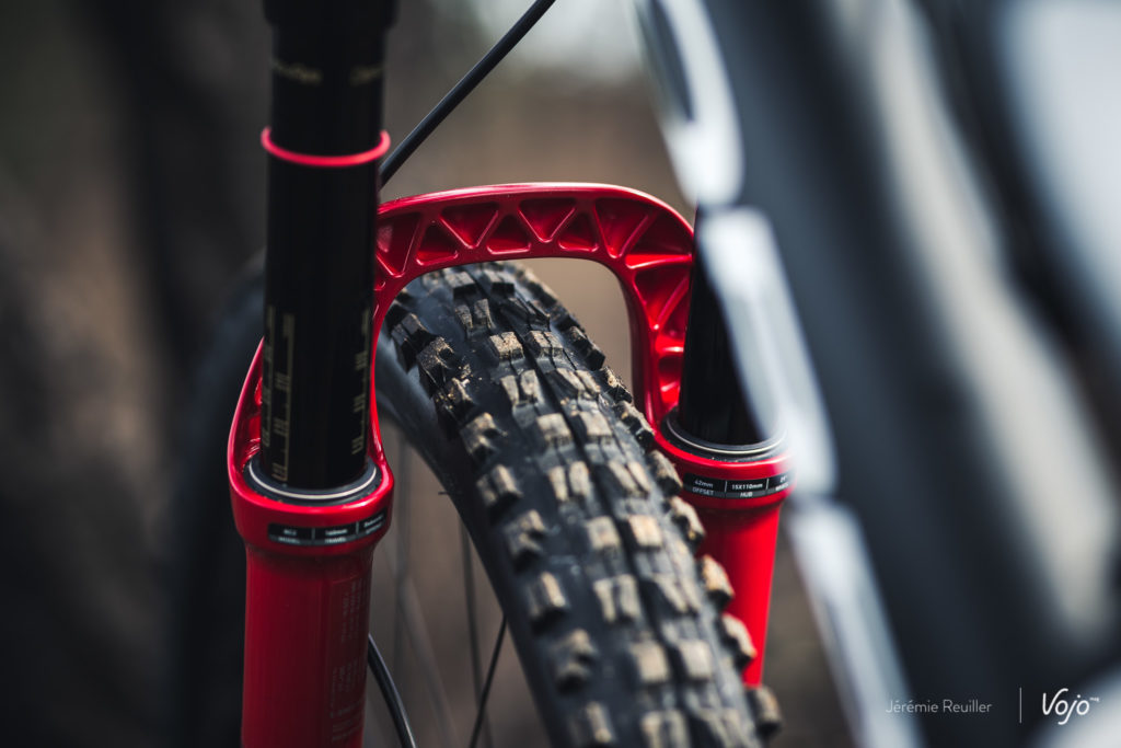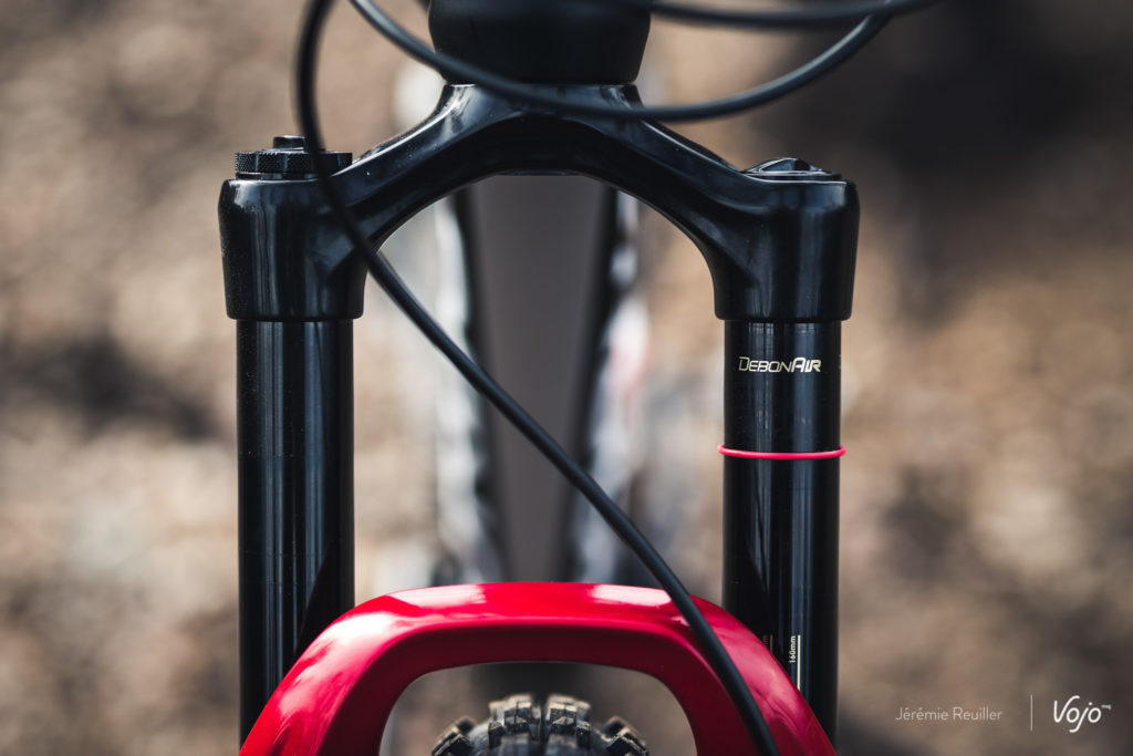 Plus tard et alors qu’on trouvait notre compte avec la fourche réglée telle qu’elle l’était, nous nous sommes amusés à fermer complètement les hautes vitesses sur un terrain rapide. Le retour du vélo est nettement plus vif et on sent tout le potentiel inexploité de la machine entre nos mains. Les pilotes les plus engagés feront à coup sûr bon usage de ce réglage.