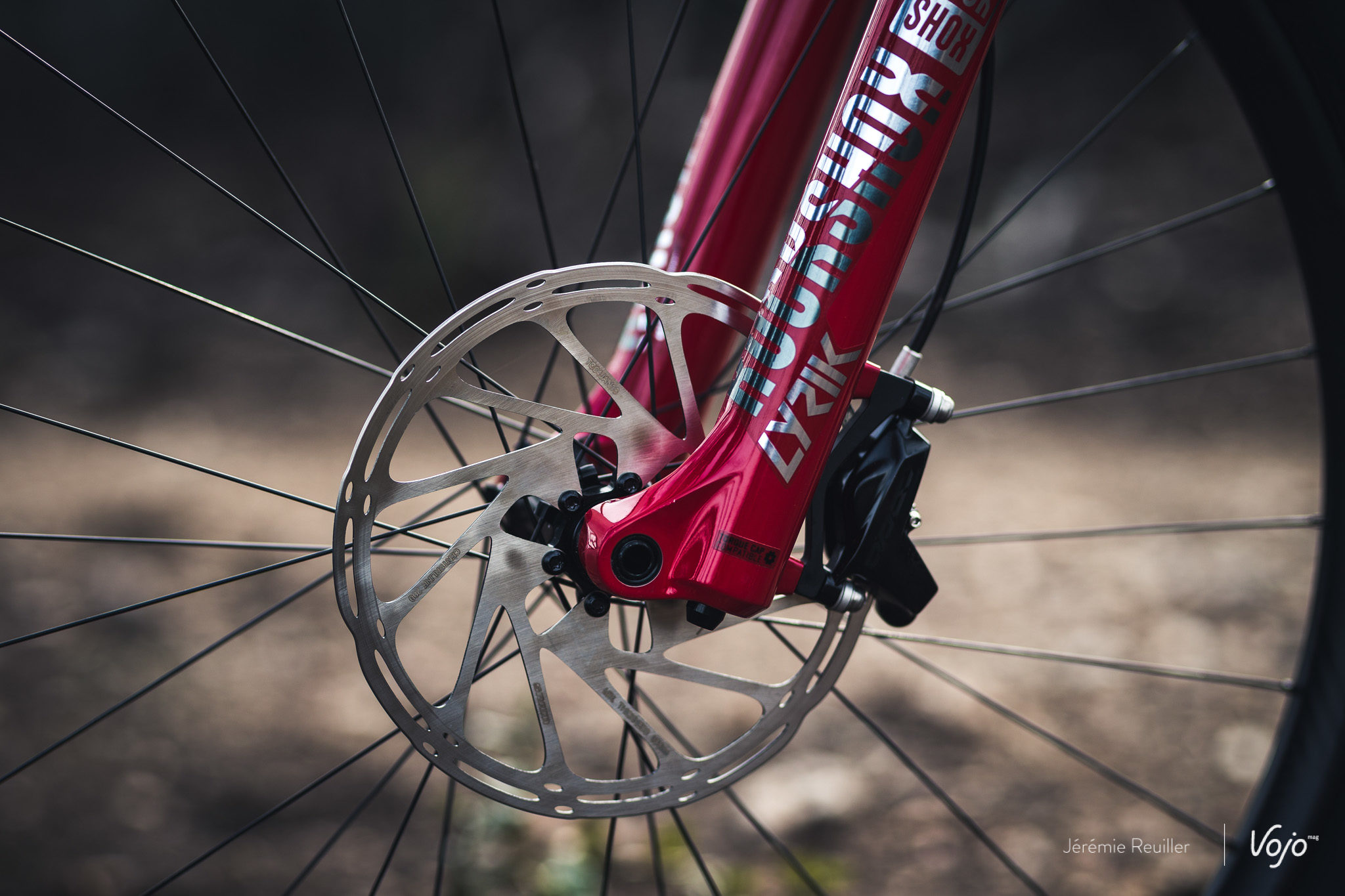 Au-delà de l’assiette, il est toujours compliqué de comparer deux fourches sans effectuer des runs consécutifs mais on sent un bon support et surtout, de bonnes facultés au moment de lire le terrain à haute vitesse, basse vitesse ou au freinage. Le seuil de déclenchement de la Lyrik est bas et permet d’offrir un très bon grip, mais dans les passages les plus appuyés, on ne plonge pas exagérément.