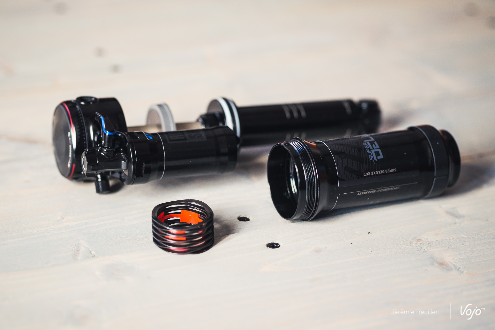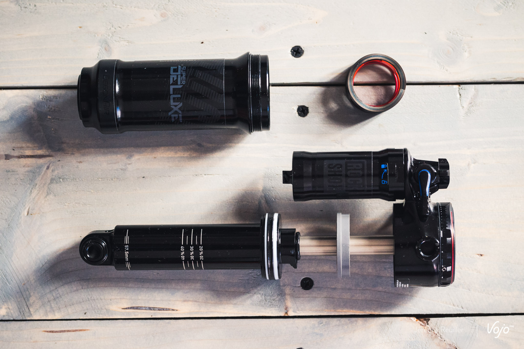 La gamme Rockshox d’amortisseurs à air reste en grande partie inchangée et aucun nouveau modèle ne fait véritablement son apparition. En revanche, de petites modifications sont apportées dans la fabrication des amortisseurs. Pour le Superdeluxe RC3, RCT et le Deluxe, le cylindre qui forme la plus grande chambre d’air a été repensé et l’usine de production a été modifiée pour arriver à un fonctionnement entraînant moins de frictions. Plus rond et sans relief à l’intérieur, il est associé à de nouveaux joints pour arriver à un fonctionnement annoncé comme plus fluide par la marque.