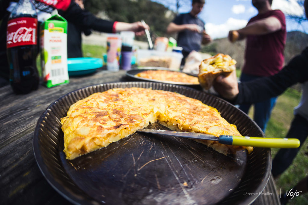 Avant de trouver l’assiette du vélo, on trouve la notre bien remplie à l’étage. Au Cap Néoulous, on mange bien et local !