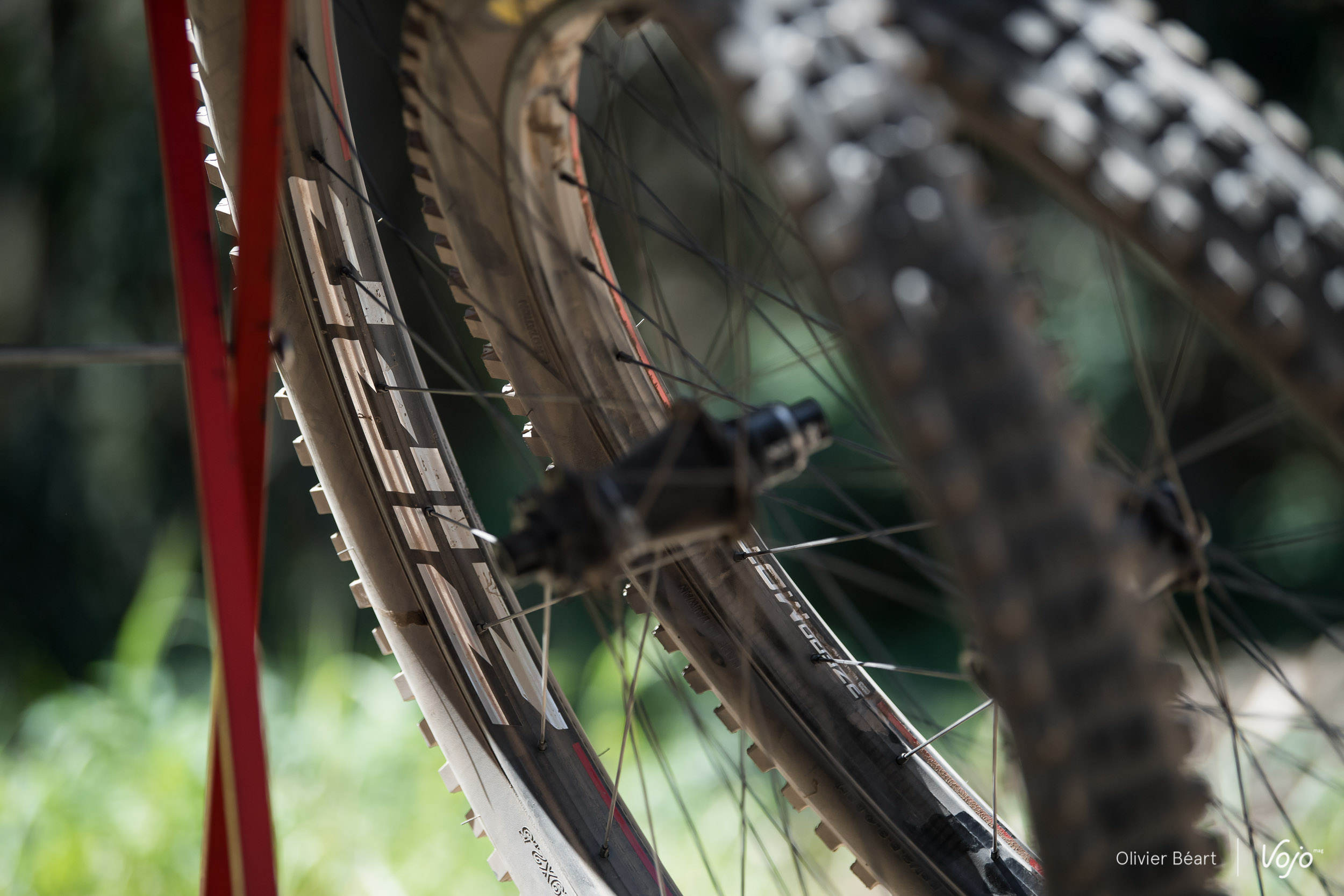 Si l’idée d’une jante à profil plat semblait intéressante sur le papier, dans la pratique, il fallait trouver la bonne alchimie pour répondre aux contraintes de notre sport et aux besoins des pilotes. Sitôt les premiers prototypes roulables sortis des moules, les athlètes Sram, comme Jérôme Clementz ou encore Adrien Dailly, ont été fortement mis à contribution. Et Bastien Donzé ne le cache pas, « les premiers essais n’ont pas été de tout repos. En nous lançant dans un terrain inconnu comme celui-là, nous pouvions nous tromper, et cela nous est arrivés. »
