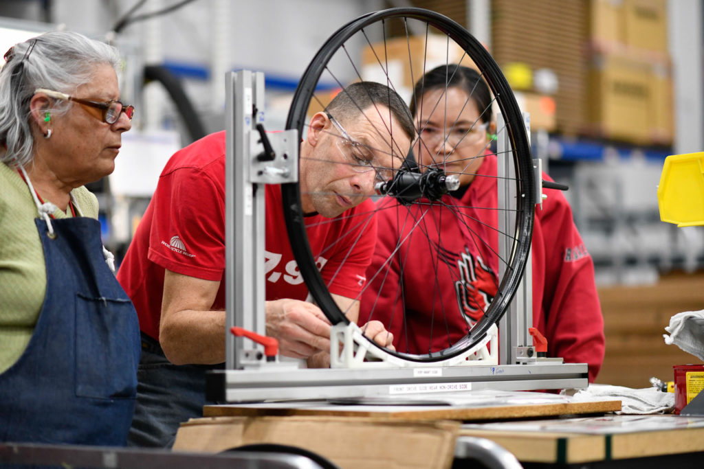 Les jantes sont intégralement produites aux USA dans l’usine Zipp. Les roues complètes sont assemblées au même endroit pour les USA et au Portugal, dans l’usine où Sram produit historiquement ses chaînes et où les roues de la marques étaient déjà montées auparavant, pour les produits destinés au marché européen.