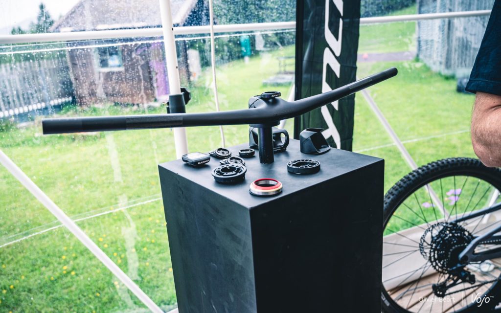 A noter que si c’est le spectaculaire cockpit tout carbone en une pièce qui capte la majorité de l’attention, Syncros a aussi développé des cintres (carbone et alu) et potence (alu) séparés en différentes longueurs et orientations pour se marier tout aussi harmonieusement avec ce système d’intégration des câbles, tout en étant à des tarifs plus raisonnables. Enfin, il existera aussi des versions « World Cup Replica » reprenant les angles extrêmes utilisées par Nino Schurter et ses acolytes.