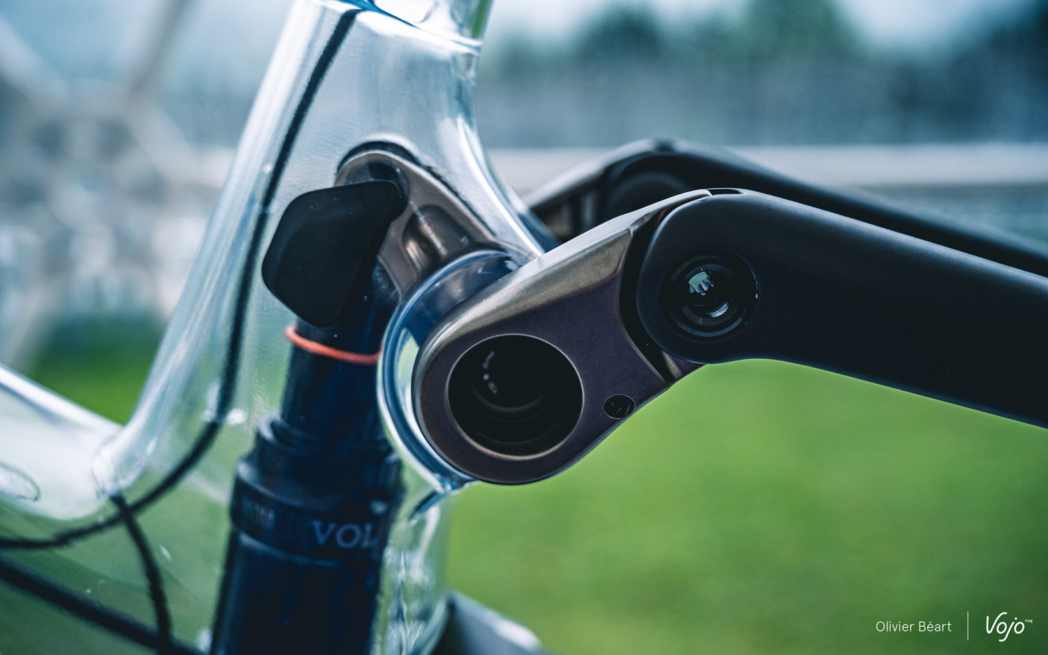 A propos de compacité, difficile aussi de faire plus ramassé que la biellette. En aluminium, elle est au cœur du système, puisque c’est elle qui assure la connexion entre l’extérieur et l’intérieur du cadre. Elle est constituée de trois pièces qui s’emboîtent via un système de cannelures. Un ensemble qui offre une rigidité nettement meilleure que toutes les biellettes classiques qu’on connaissait jusqu’ici. Le tout est monté sur roulements surdimensionnés avec en plus un joint d’étanchéité supplémentaire. Cela a aussi permis de se passer de pontet de renfort entre les haubans, ce qui laisse plus de dégagement au pneu.