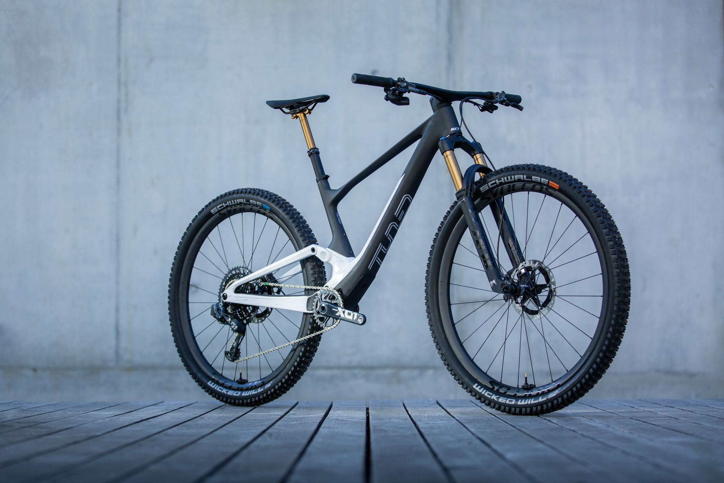 Parmi les grandes différences entre les deux versions (vous voyez le 900 Tuned ci-dessus), on note des pneus plus cramponnés et renforcés sur le 900, qui accueille aussi une fourche de 130mm à l’avant contre 120 sur le RC, et des amortisseurs avec plus de volume d’air à l’arrière même si le débattement reste de 120mm. Le poste de pilotage passe aussi de 740 à 760mm et présente un léger rise alors que le cintre est plat sur le RC. Tous les modèles sont équipés de tige de selle télescopique, mais le débattement passe de 100mm sur le RC à 125 ou 150mm selon la taille du cadre sur le 900. Tous ont en tout cas des jantes de 30mm de large et des pneus en 2.4 de section même si les profils varient.