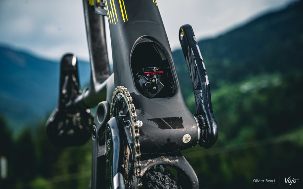 Avec toutes ces histoires d’intégration, on en a presque oublié de vous parler du débattement ! Désormais, il n’y a plus de version 100mm. C’est 120mm pour tout le monde, y compris pour les modèles dérivés de ceux utilisés par le team en coupe du monde. Vu les circuits actuels, disposer de 120mm devenait une nécessité, mais sans pour autant perdre le rendement et le dynamisme du vélo au pédalage. On est sur un vélo conçu pour gagner des courses de XC, il ne faut pas l’oublier. Et si elles se gagnent désormais aussi en descente, il ne faut pas oublier les performances en montée.