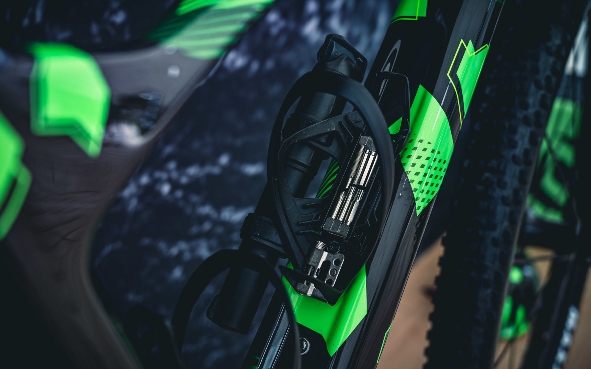 Syncros a aussi développé une nouvelle gamme de porte-bidons qui peuvent accueillir très discrètement un multi-tool plus complet sous le bidon. A noter aussi que ces nouveaux porte-bidons à tirage latéral sont adaptables pour une sortie gauche ou droite grâce à une simple pièce à clipser.