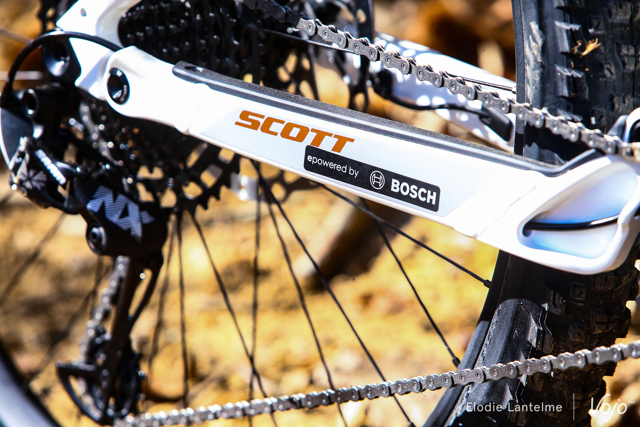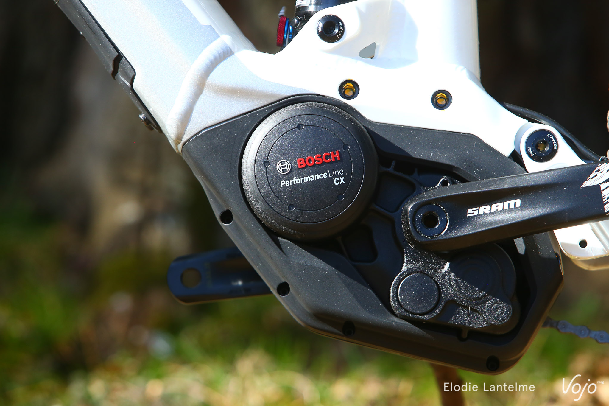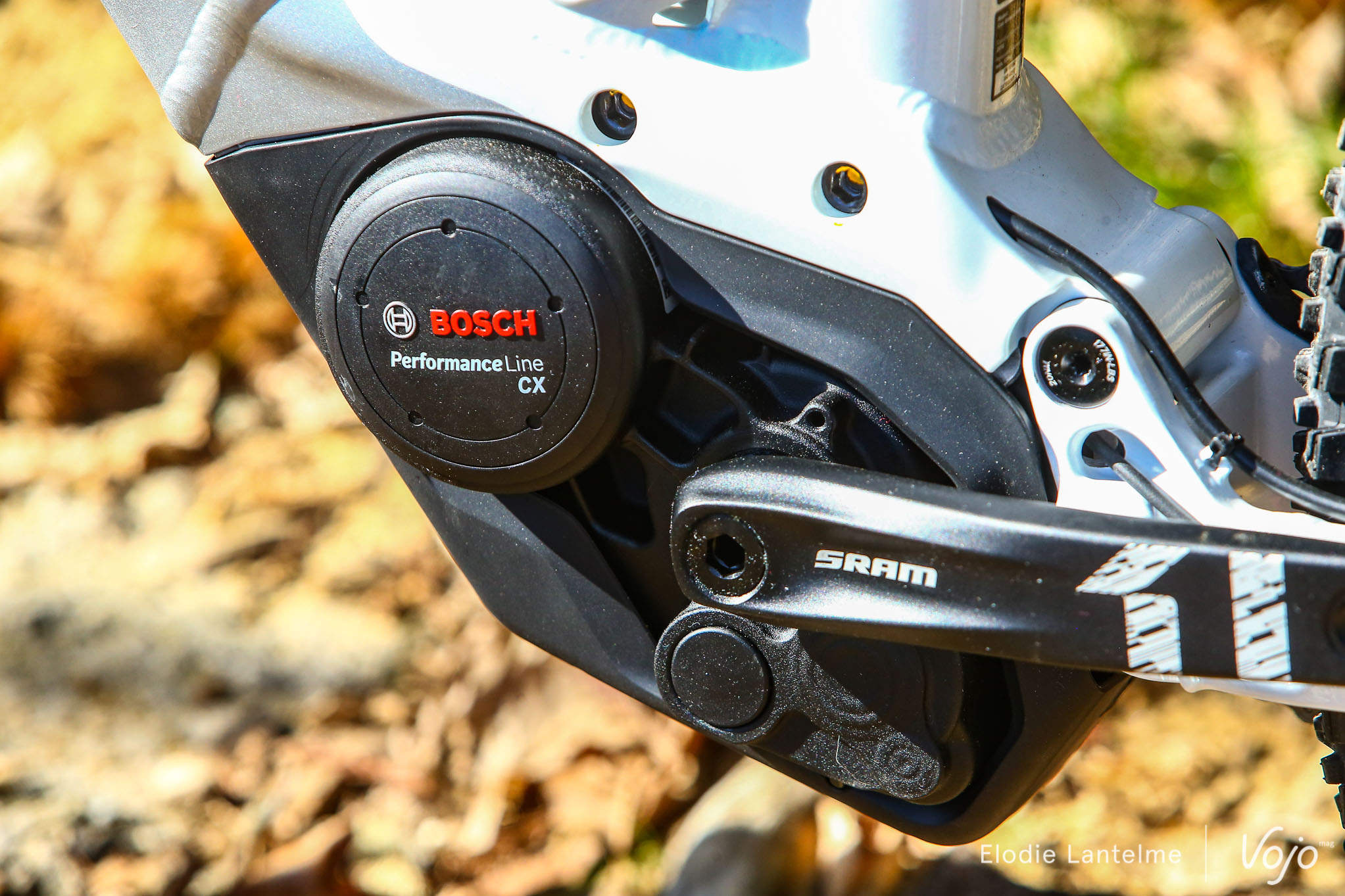 Il y a eu l’e-Spark (retrouvez notre prise en main ici), puis l’e-Genius (dont la prise en main est, elle, là) en 2017. Aujourd’hui, après s’être déjà bien occupé du créneau de son catalogue VTTAE dédié à la performance sportive, Scott se tourne vers un public plus large, auquel se destine donc ce Strike eRIDE, qui s’insère, en matière de débattement, entre l’e-Genius et l’e-Spark. Et pour séduire les (de plus en plus nombreux) potentiels acquéreurs d’un vélo de montagne électrique qui ne baignent pas nuit et jour dans le monde spécialisé du cyclisme, la marque suisse a misé sur un argument qui parle aux moins avertis: la motorisation Bosch. Contrairement aux e-Genius et e-SPark, équipés de moteurs Shimano, le Scott Strike eRIDE est, lui, motorisé par Bosch. Vu la vocation plus « grand public » de ce VTTAE, on aurait pu s’attendre à ce qu’il soit équipé de la version Active Line, mais que nenni! Car avec ce Strike eRIDE, Scott a aussi l’intention de ne pas délaisser les VTTistes qui aspireraient à emmener les 140 mm de ce tout-suspendu sur des terrains plus techniques. C’est donc le modèle Performance CX Line de Bosch qui a été choisi.