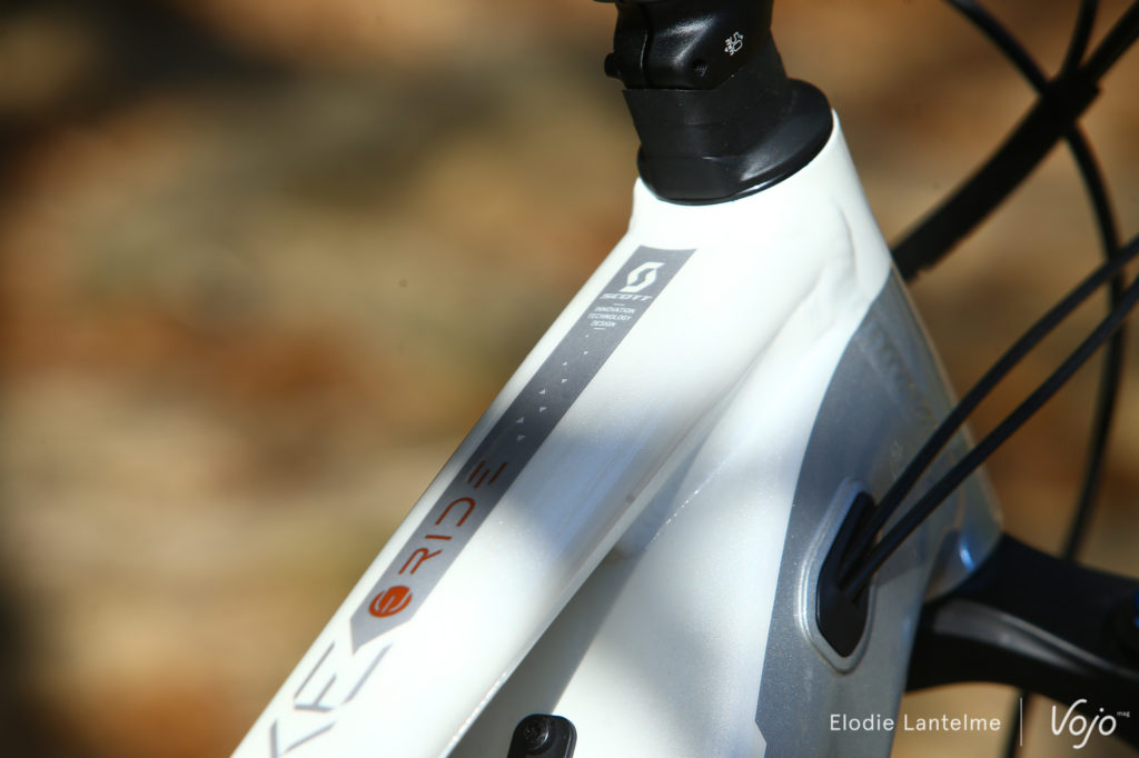 Celui-ci est alimenté par la nouvelle batterie Powertube de 500 Wh, qui assure une intégration poussée, apte à séduire un public attaché à l’esthétique de sa monture. La recharge peut se faire sur le vélo via la nouvelle connectique Scott à clapet, placée en haut du tube diagonal, ou en démontant la batterie, ce qui se réalise aisément avec la clé, et on salue le recours au « double clic » (un clic pour ouvrir et libérer la batterie, puis, une pression sur le bouton placé au-dessus de la batterie permet de l’enlever totalement).