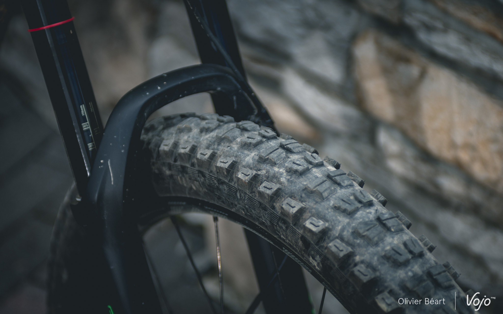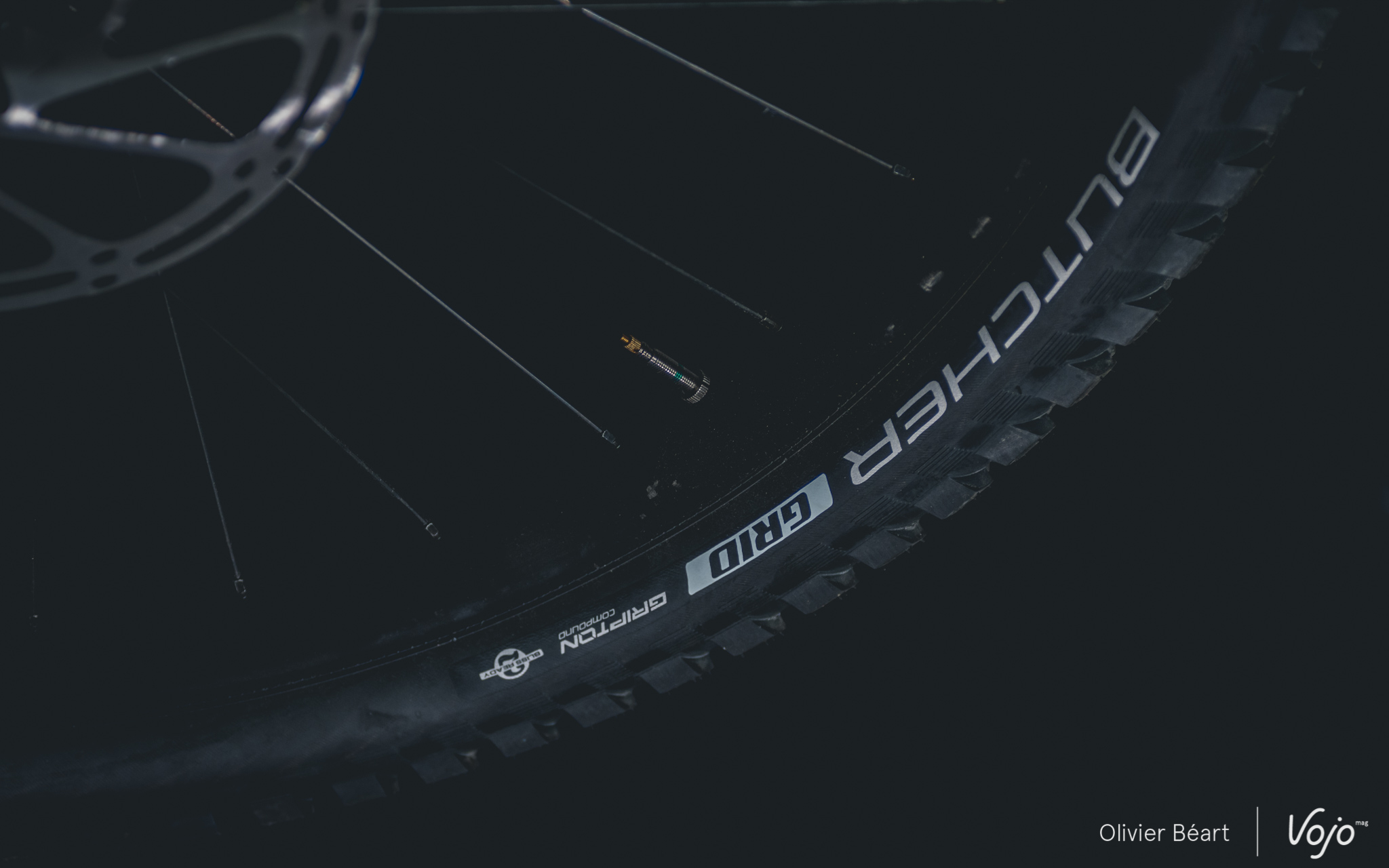 Les suspensions sont impériales (même si la Lyrik a un peu tendance à plonger au freinage et en réception de saut – mais nous n’avons pas eu le temps d’affiner le réglage à l’aide de volume spacers) et on sent qu’on a en permanence de la réserve. Nous avons aussi bien apprécié la monte pneumatique, dans la mesure où les Butcher en 2.8 n’ont rien de flou (merci la carcasse bien rigide), se montrent solides (nous n’avons pas vu de crevaisons durant tout le press-camp, ni pour nous, ni pour d’autres journalistes) et leur grip est exceptionnel, y compris quand c’est un peu humide.