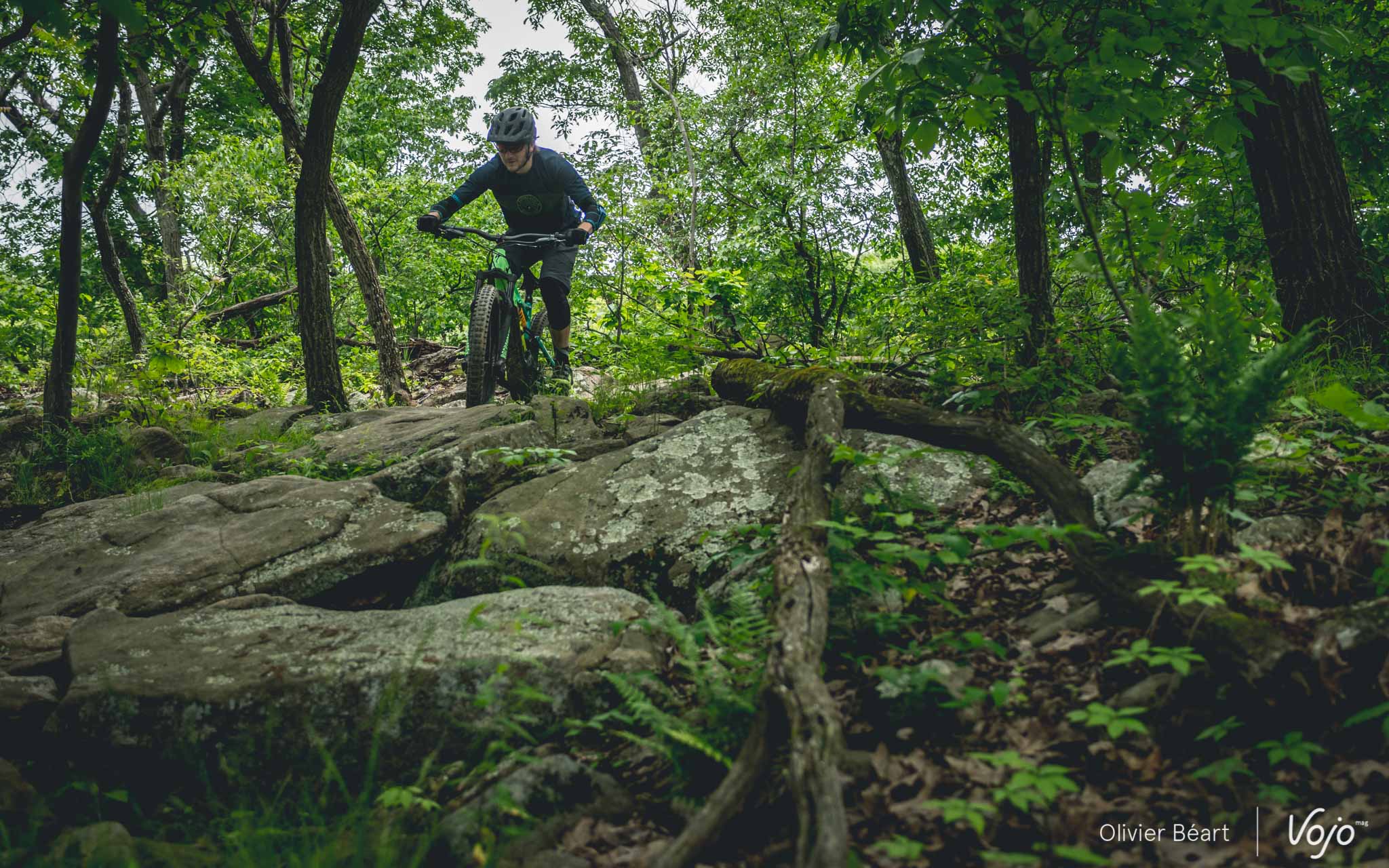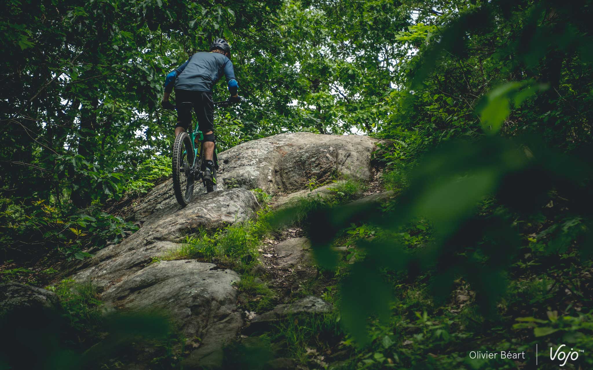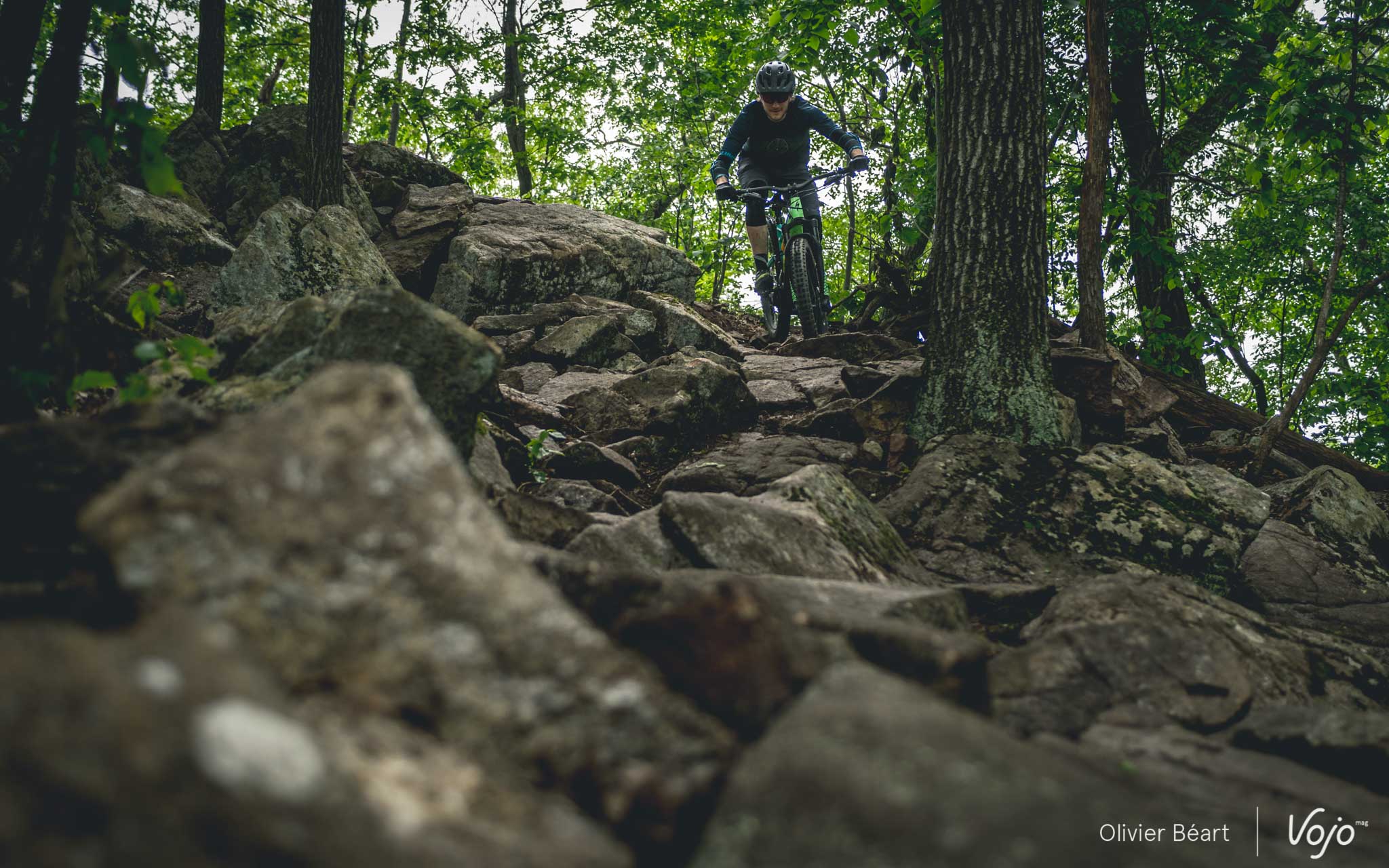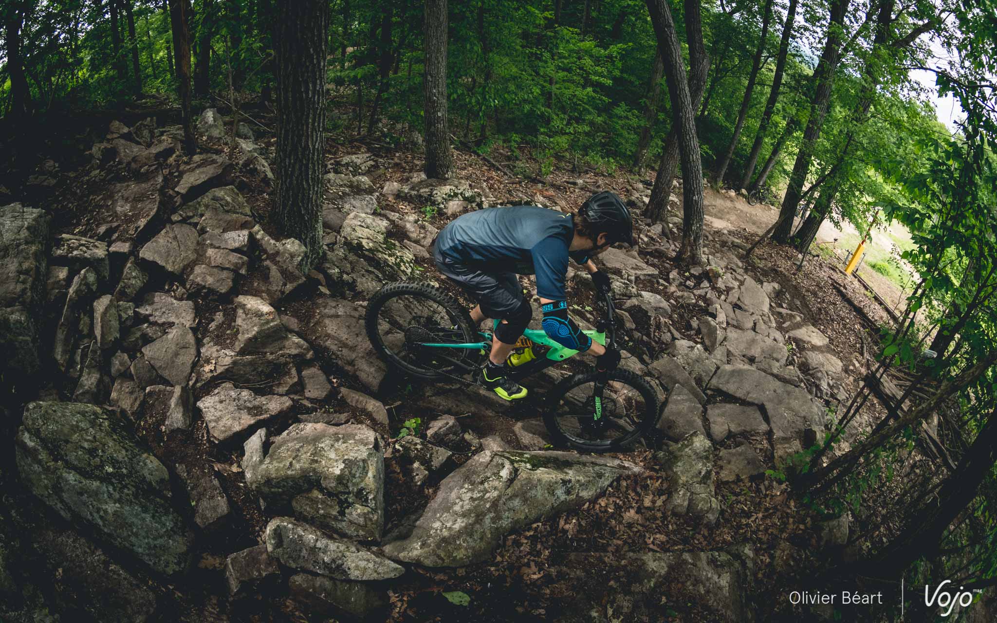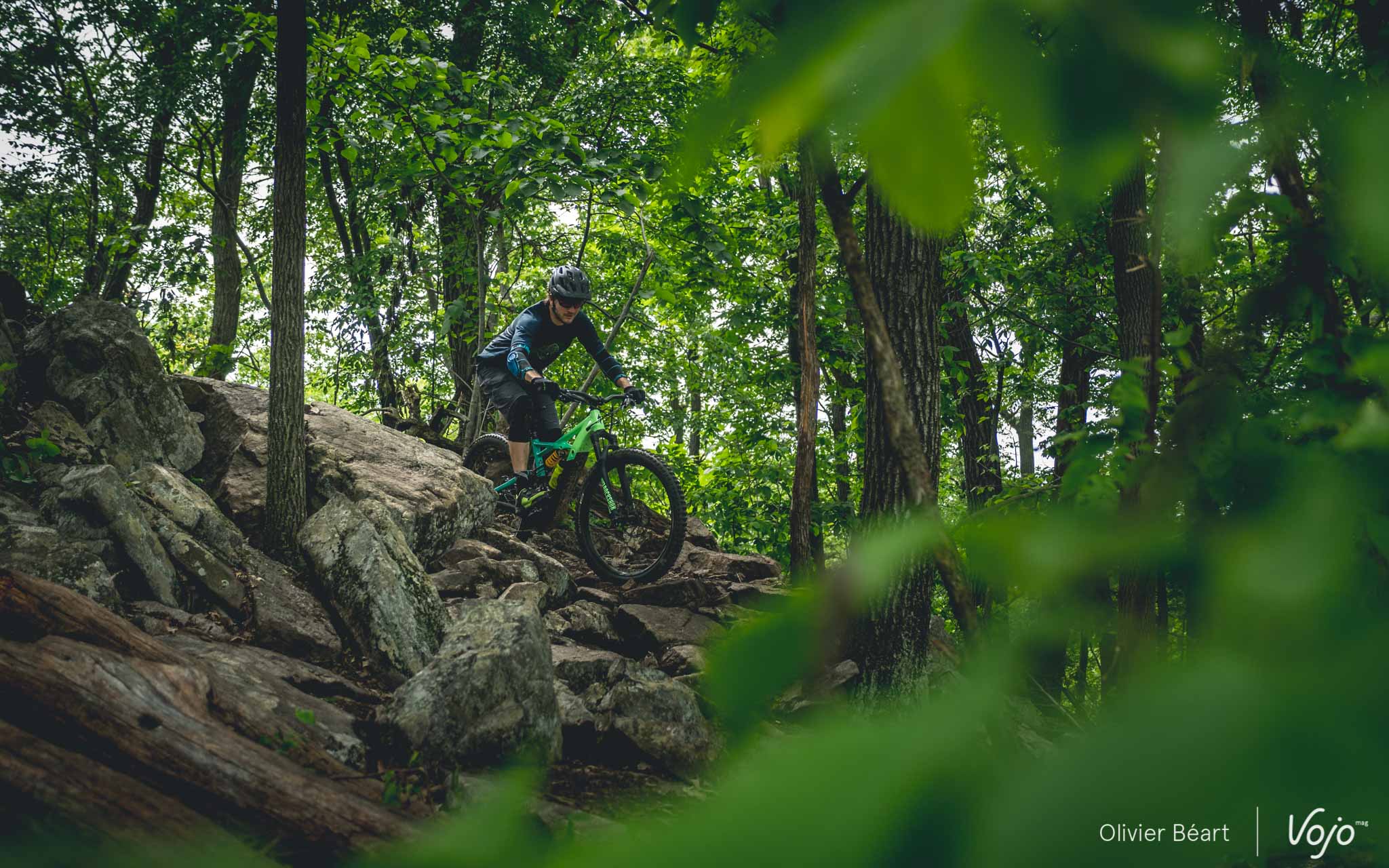 Néanmoins, dans les énormes pierriers des pistes les plus engagées de Mountain Creek, on se rend vite compte qu’on pilote autrement qu’avec un Levo. Là où on va plus se faufiler entre les obstacles avec le Levo, on va carrément les affronter, se jeter dessus et les avaler avec le Kenevo.