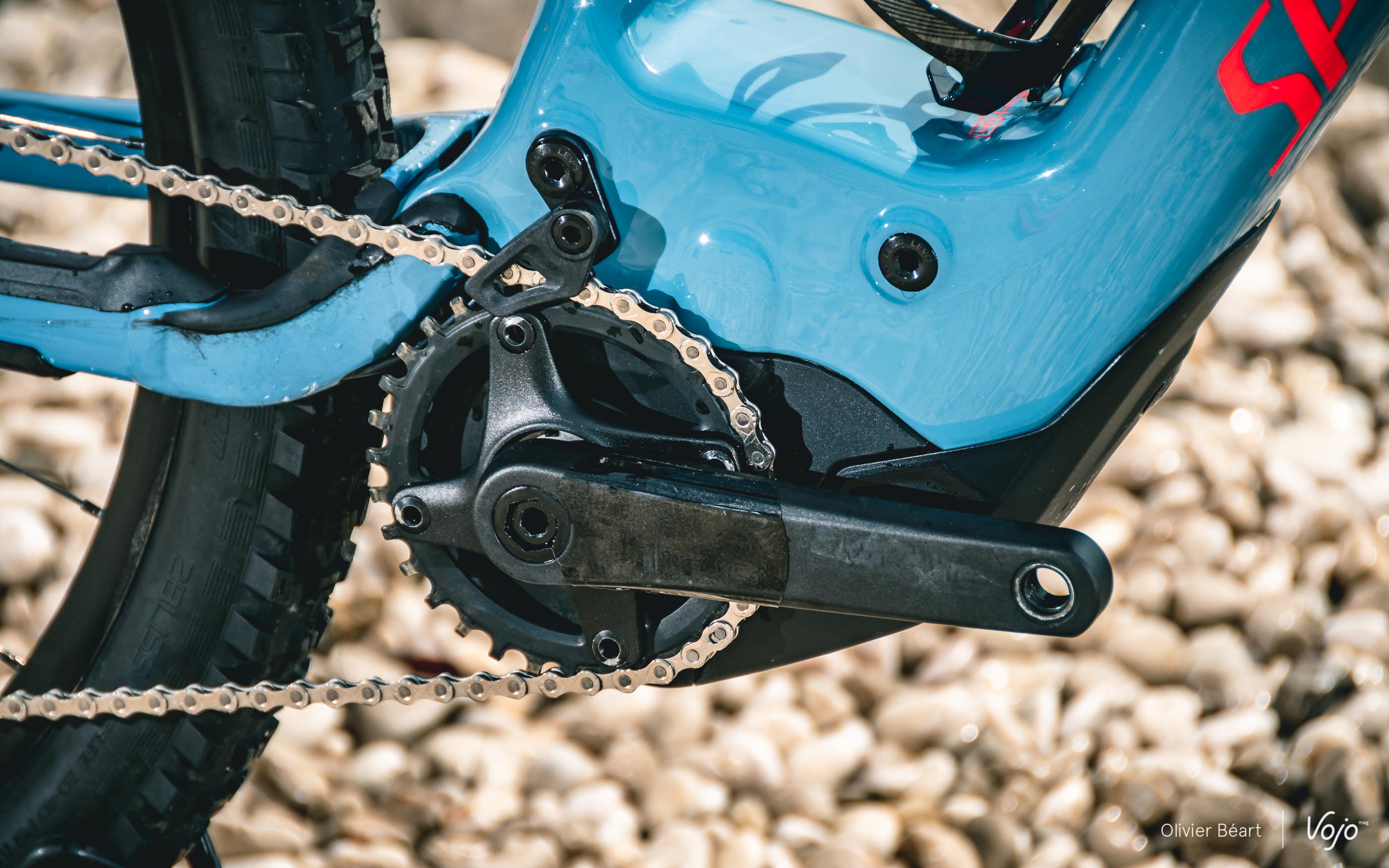 Il a une transmission Sram XO1, des freins Code, une fourche RockShox Pike RC, des roues Roval Traverse et une tige de selle Command Post. Il ajoute surtout la batterie 700Wh de série.