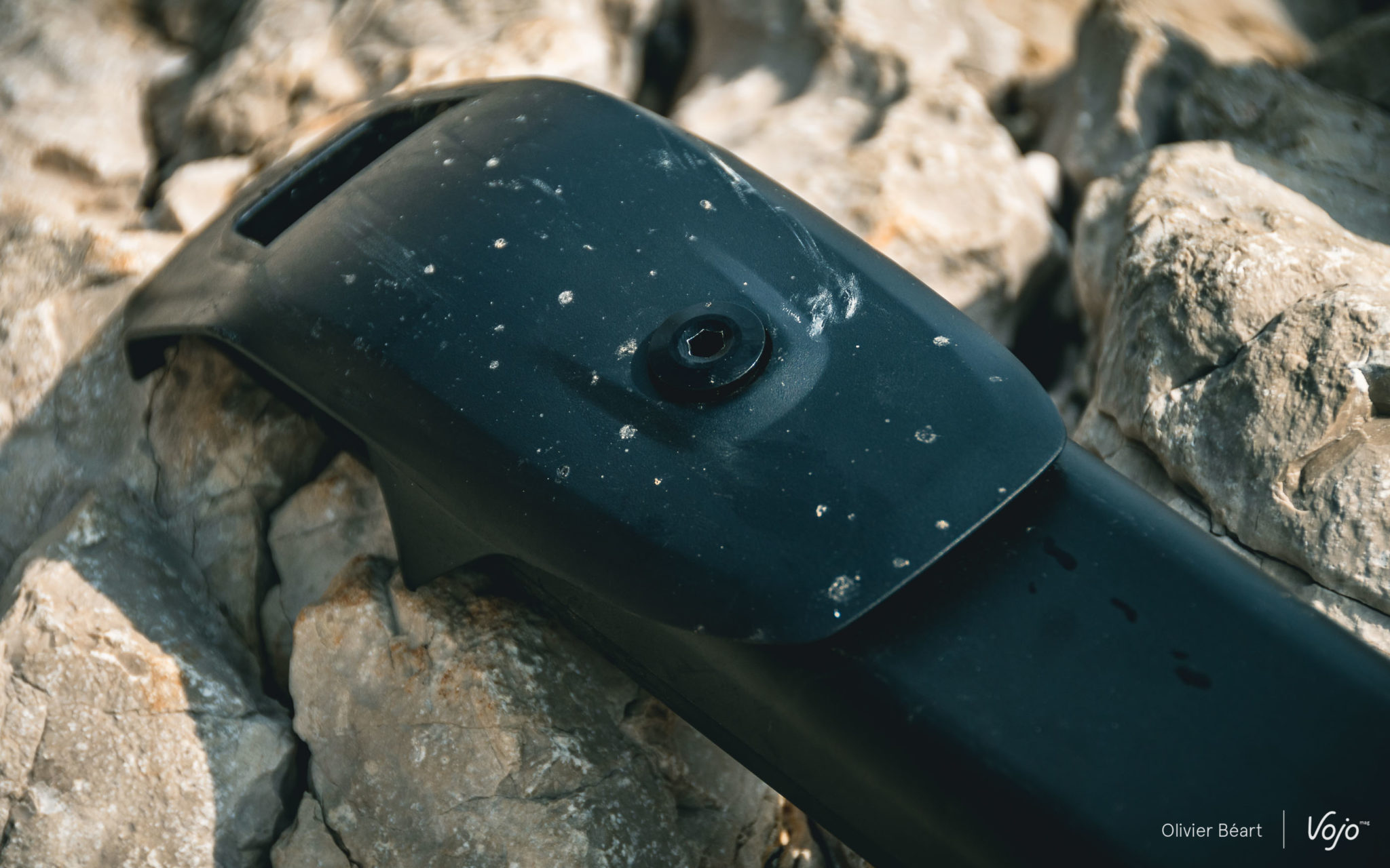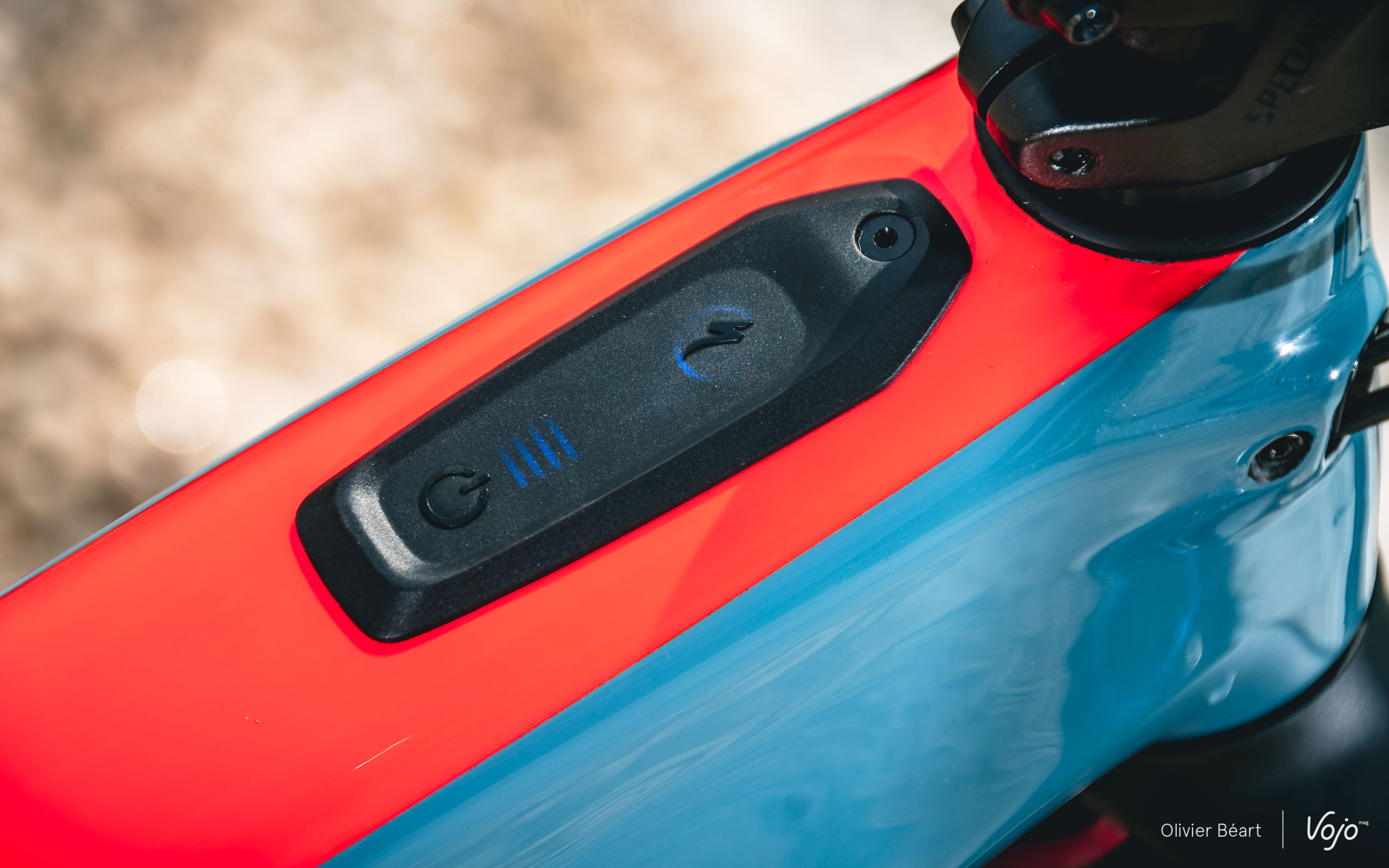 L’allumage du moteur ne se fait désormais plus sur le côté, mais sur le haut du tube supérieur. Cela reste discret, mais si on souhaite jeter un œil sur le niveau de batterie ou le mode sélectionné, c’est plus pratique qu’avant. Si on trouve les diodes dérangeantes, il est même possible de les éteindre manuellement via l’app Mission Control. C’est aussi sous cette unité que se cache la prise diagnostic.