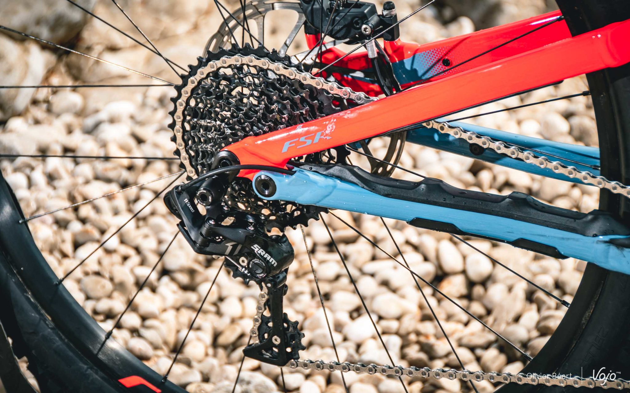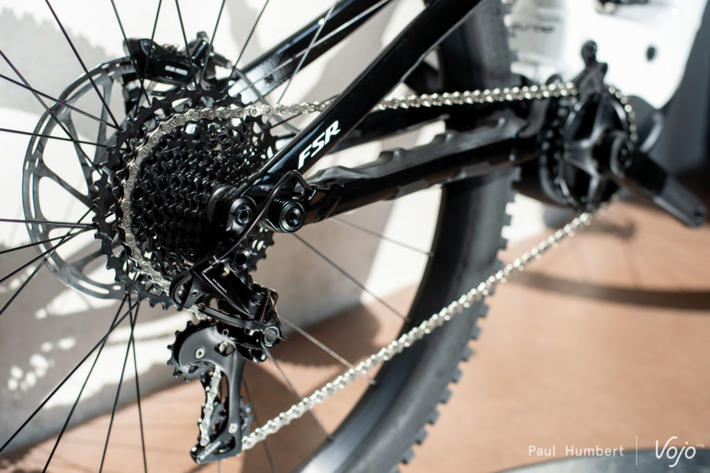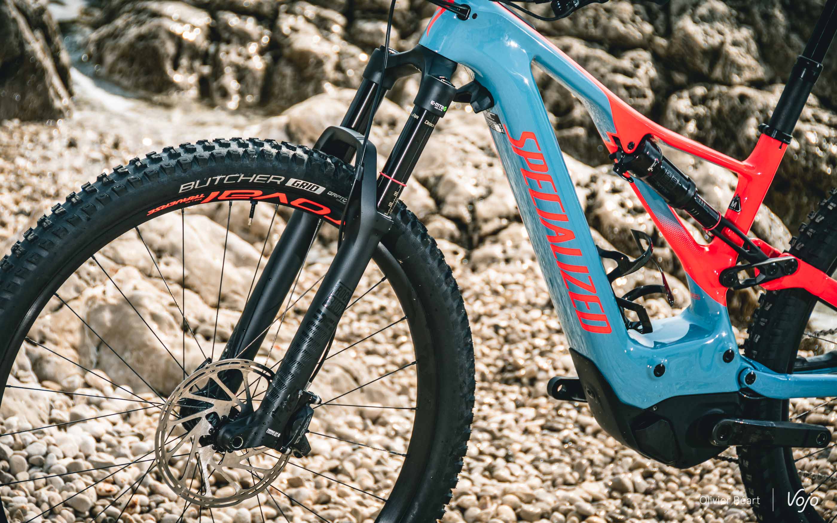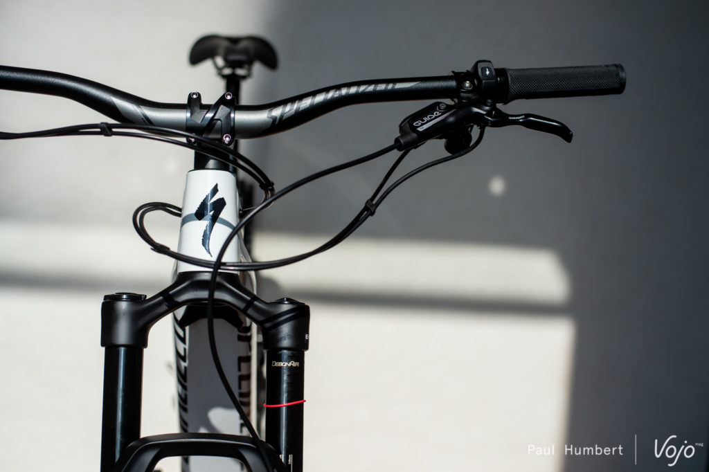 Tous les modèles sont montés d’origine en fourches de 150mm de débattement (on peut monter jusque 160 si on le souhaite) et avec des transmissions 11 vitesses. Ces dernières gardent la préférence de Specialized pour des questions de fiabilité, d’étagement et, avec du 10/42, elles se montrent amplement suffisantes en amplitude de développements vu la présence du moteur.
