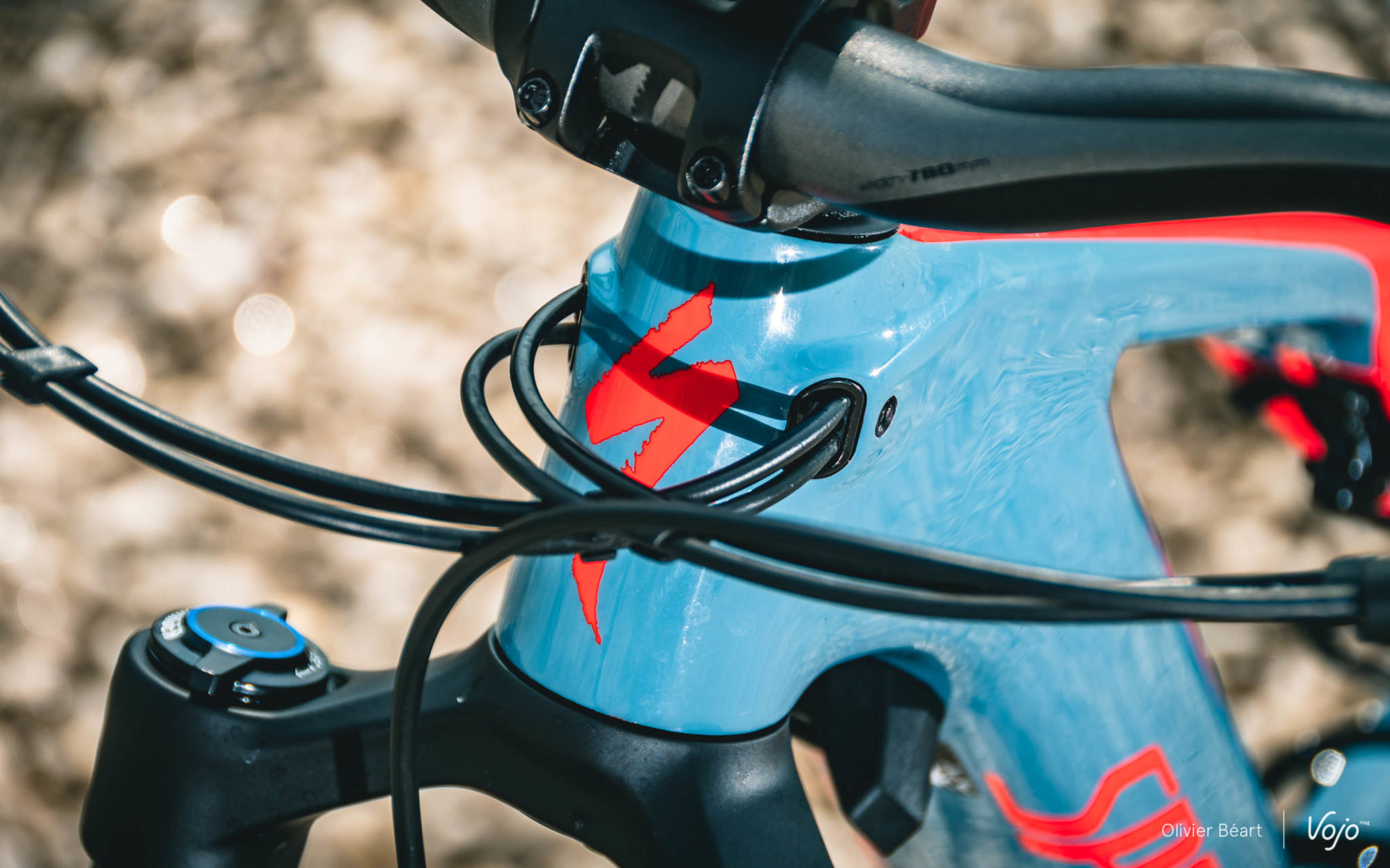 Signalons aussi que le pédalier Praxxis reçoit de nouvelles manivelles en 165mm de longueur, plus légères et dotées d’une nouvelle étoile qui recouvre mieux le roulement du boîtier de pédalier pour améliorer l’étanchéité tout en étant plus légère de 70g. Le plateau est, lui, toujours en acier. La tige de selle télescopique Command Post est en 34,9mm de diamètre et offre 160mm de débattement, comme sur le Stumpjumper.