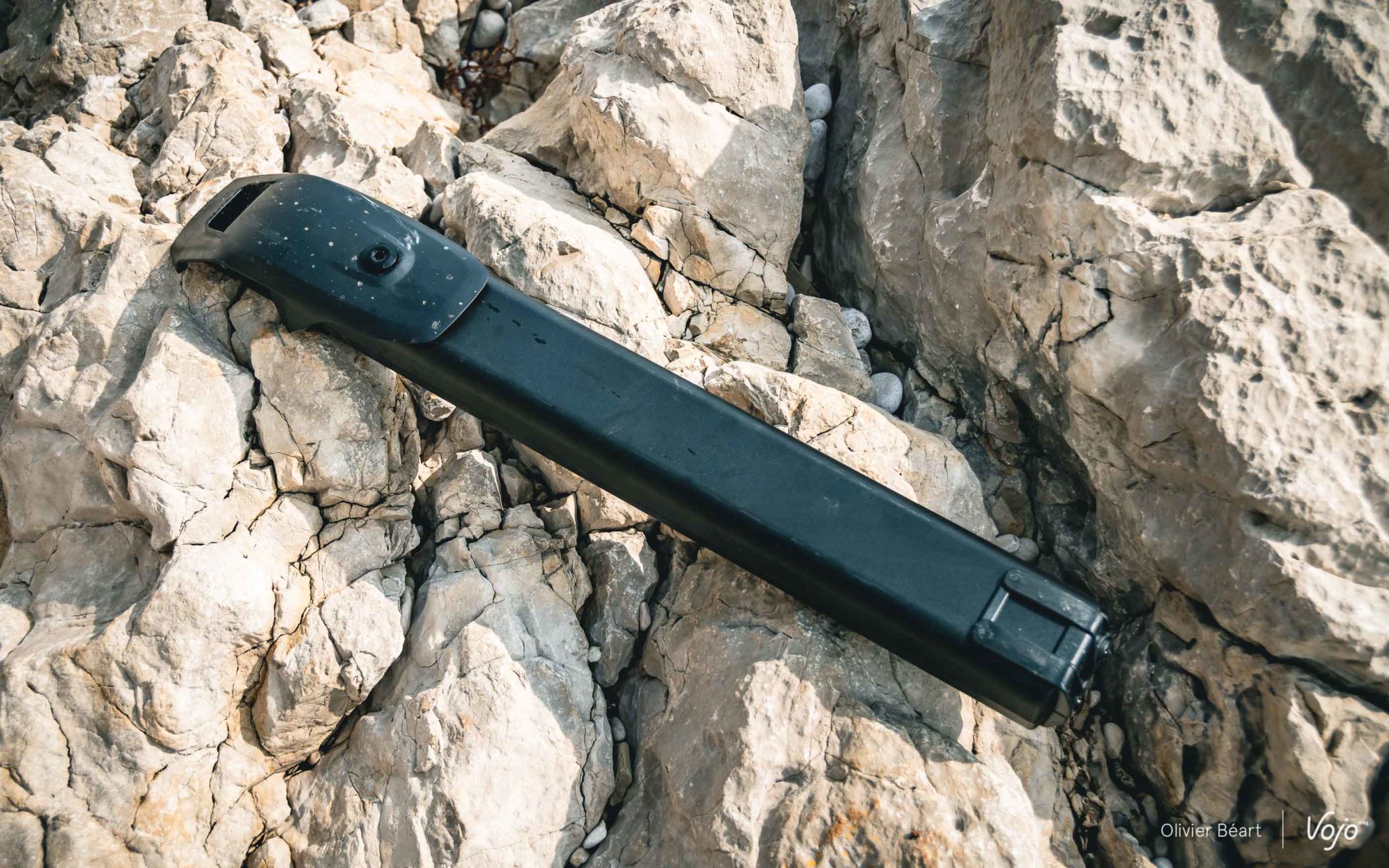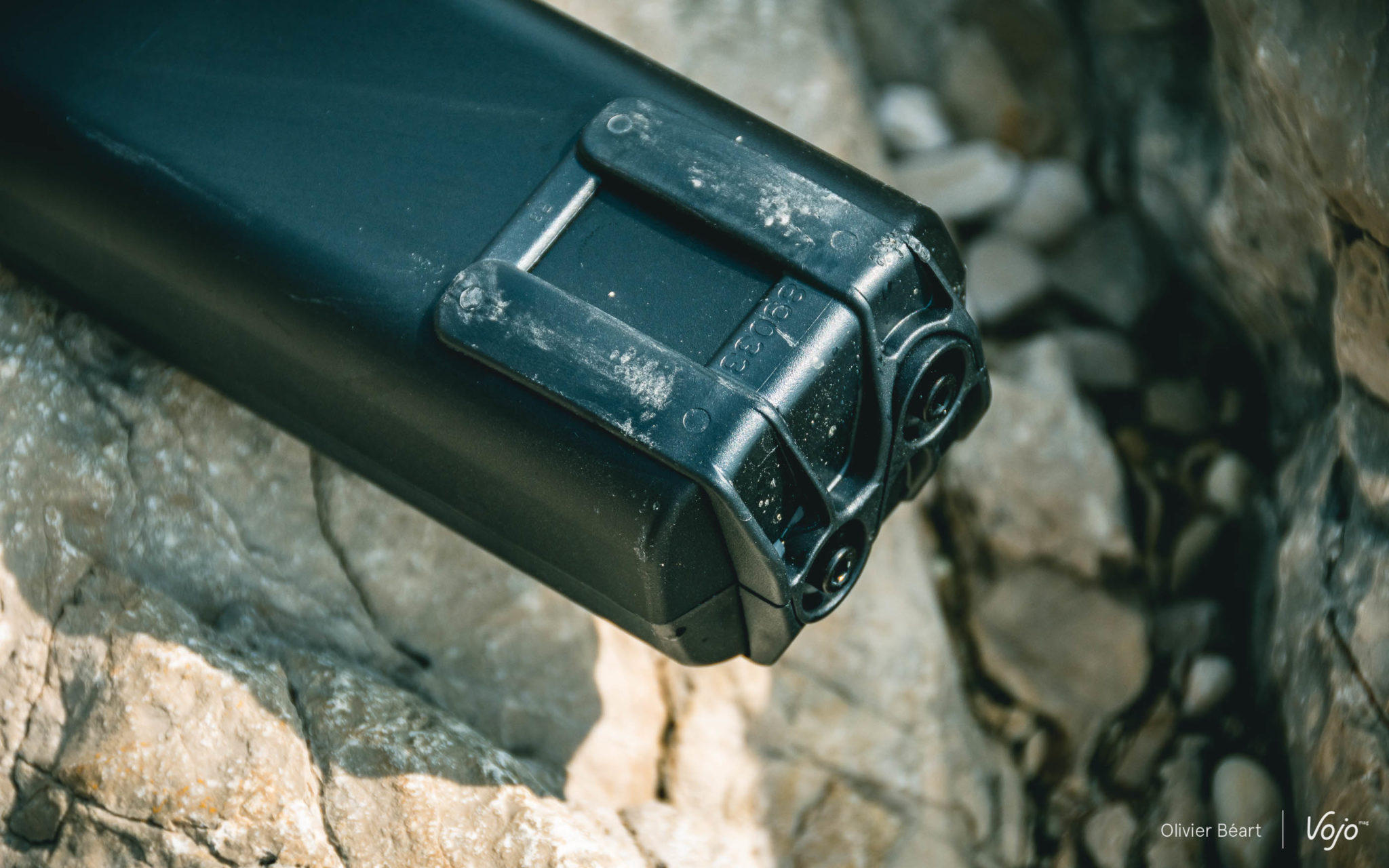 Seule la logique change un peu, puisque le démontage se fait désormais par le bas, au niveau du moteur et du pédalier. Mais il n’y a toujours qu’une seule vis à défaire avant de glisser ses doigts dans un orifice prévu à cet effet pour retirer la batterie. Pour la remettre, il suffit de la laisser glisser jusqu’à entendre un « clic », signe qu’elle est bien coincée à ses deux extrémités, étudiées pour qu’il n’y ait aucun risque de vibrations parasites. L’opération ne prend que quelques secondes, comme on peut le voir dans cette vidéo :