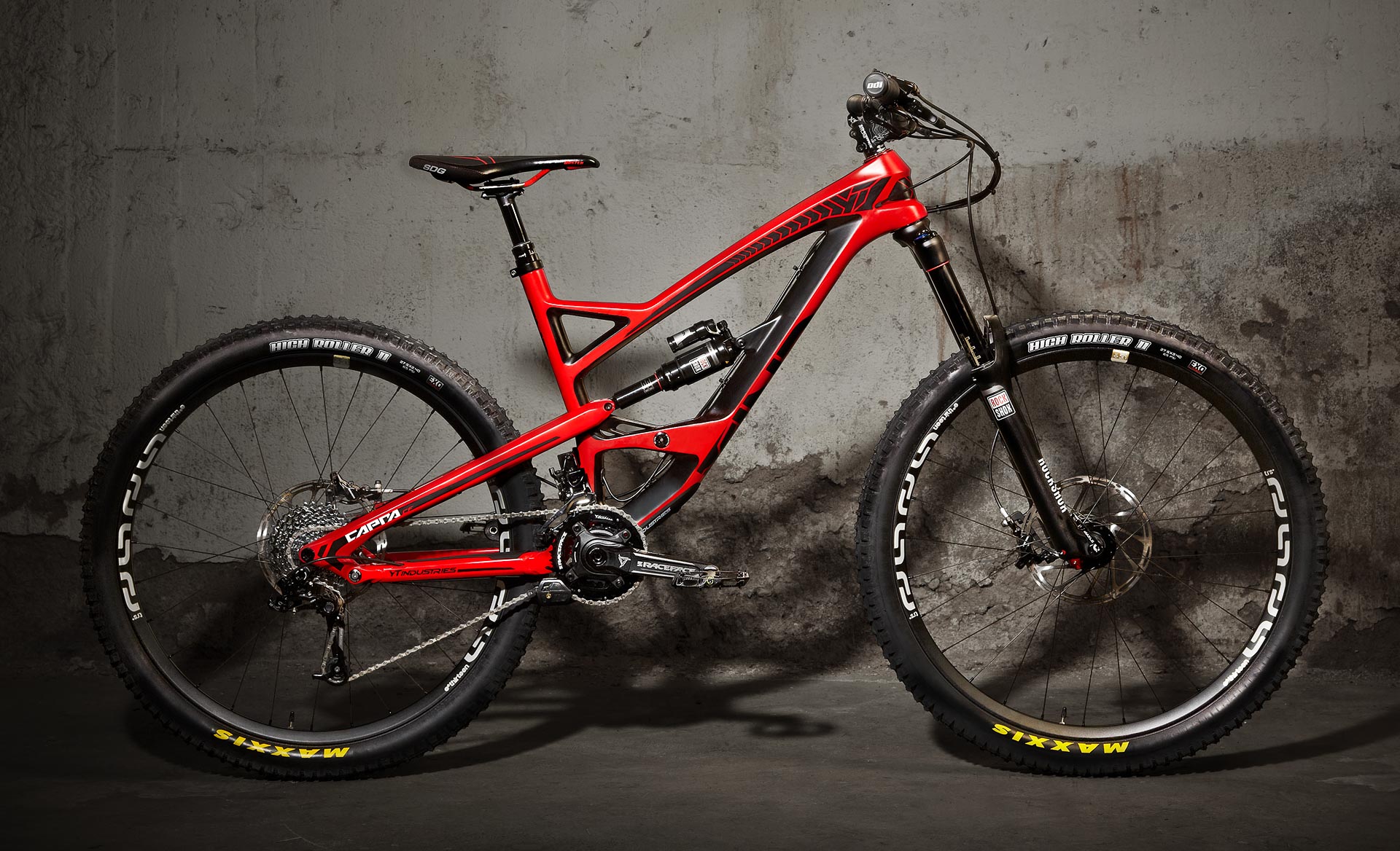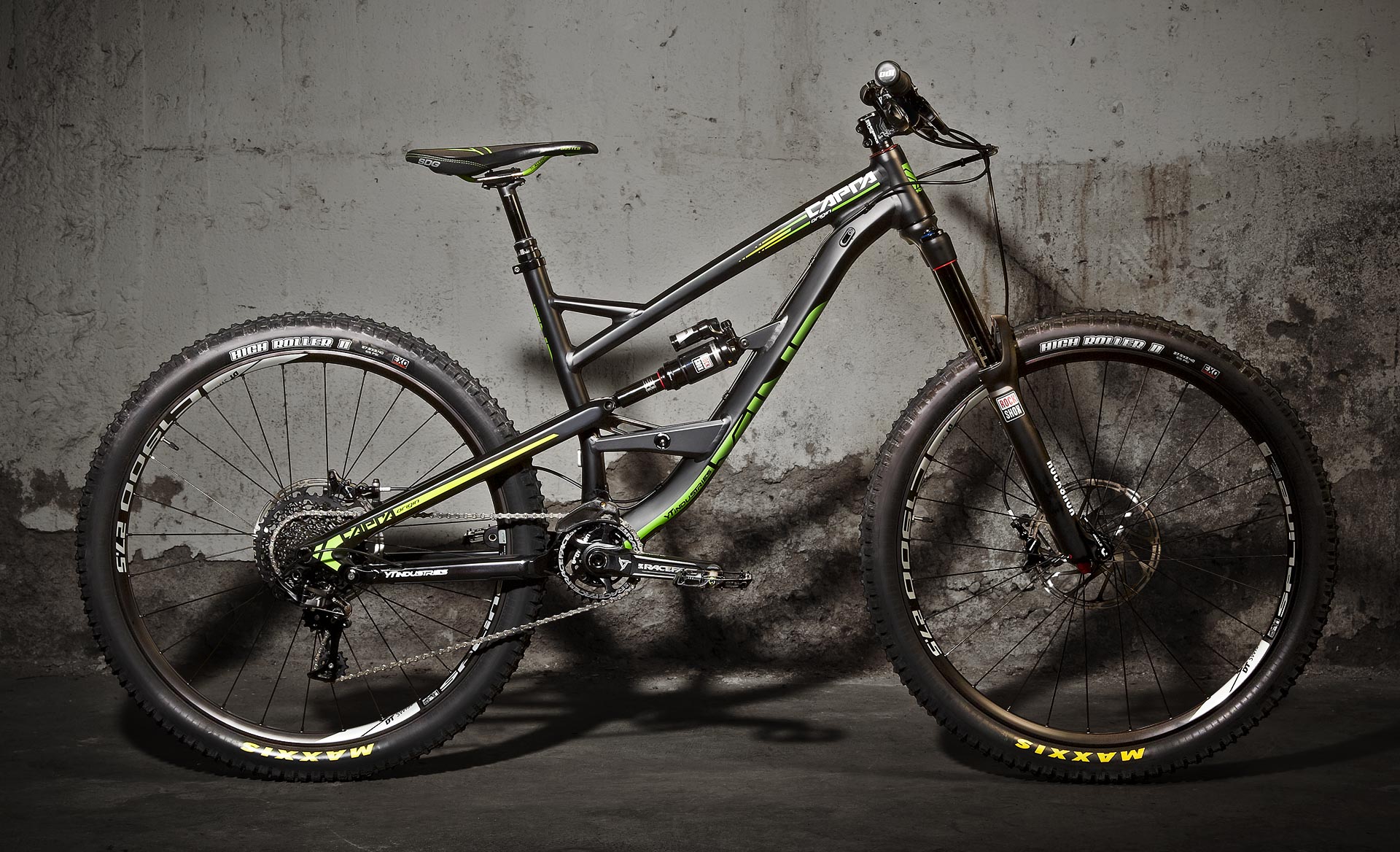 – Le Capra AL Comp 1 avec fourche Pike RCT3, roues DT Spline 1900, pédalier Race Face Turbine et transmission Sram X1. Il est affiché à 2599€ pour 13,9kg.