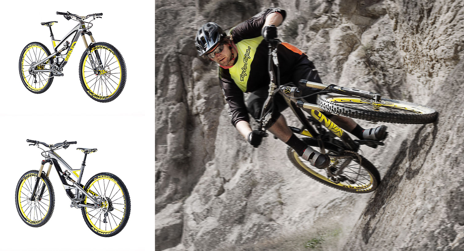 – Le Capra CF Pro Race est maintenant en gris, avec toujours les roues Mavic CrossMax Enduro et les suspensions BOS, mais avec la nouvelle version « Frequency Control Valve » de la Deville 160mm. Il reçoit aussi un poste de pilotage Renthal avec cintre en carbone. Il est affiché à 4199€ pour 12,9kg.