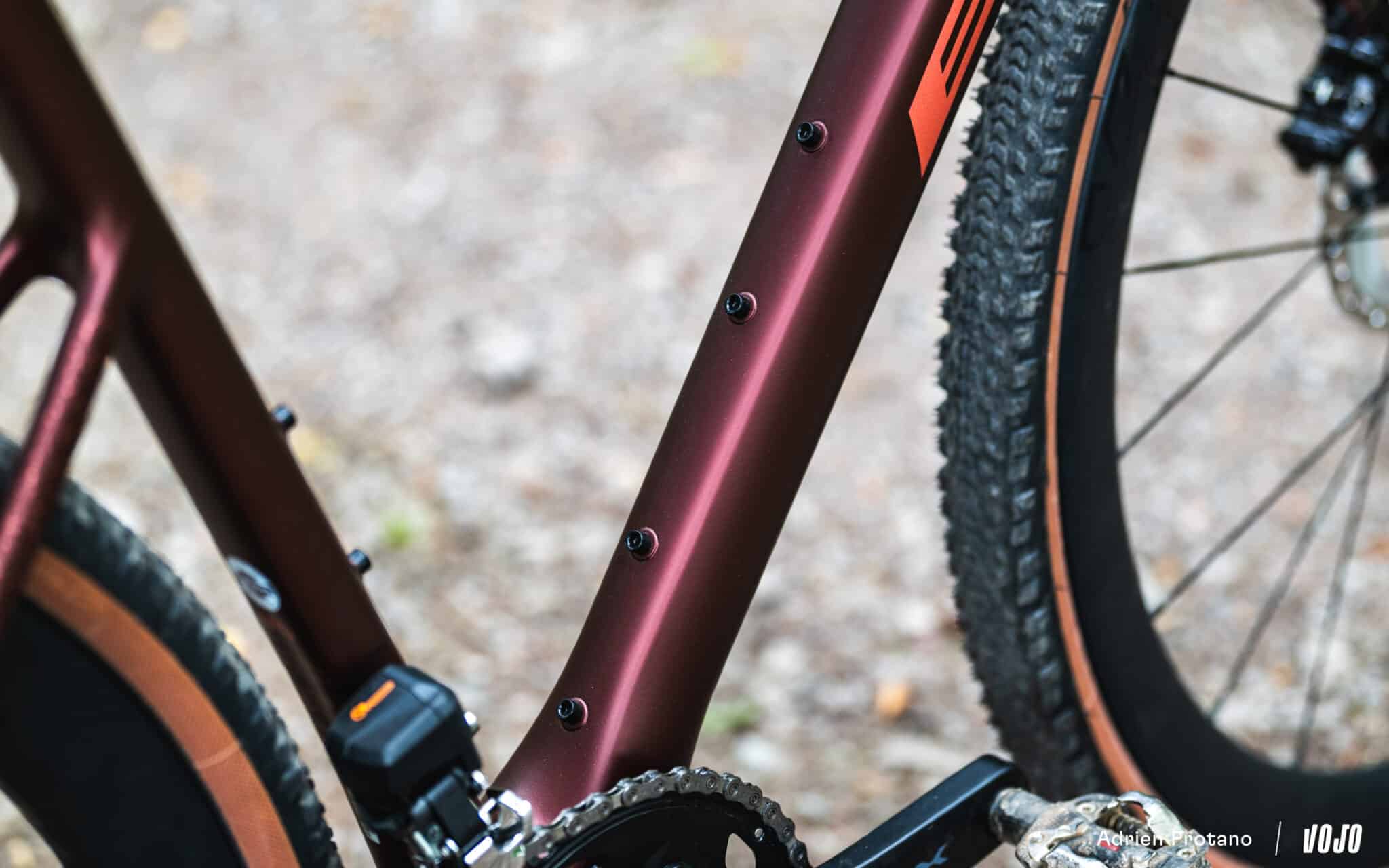 Cette cure de minceur et cette spécialisation dans la performance ne se sont pas faites sans concession. C’est par exemple le cas de cette boîte à gant sous le tube diagonal, présente sur le Gravel X et que BH a décidé de ne pas transférer sur le GravelX R. Les inserts sur la fourche et au sein du triangle avant ont par contre été conservés tels quels, un choix que l’on salue et qui permet de garder ouverte la porte du bikepacking.