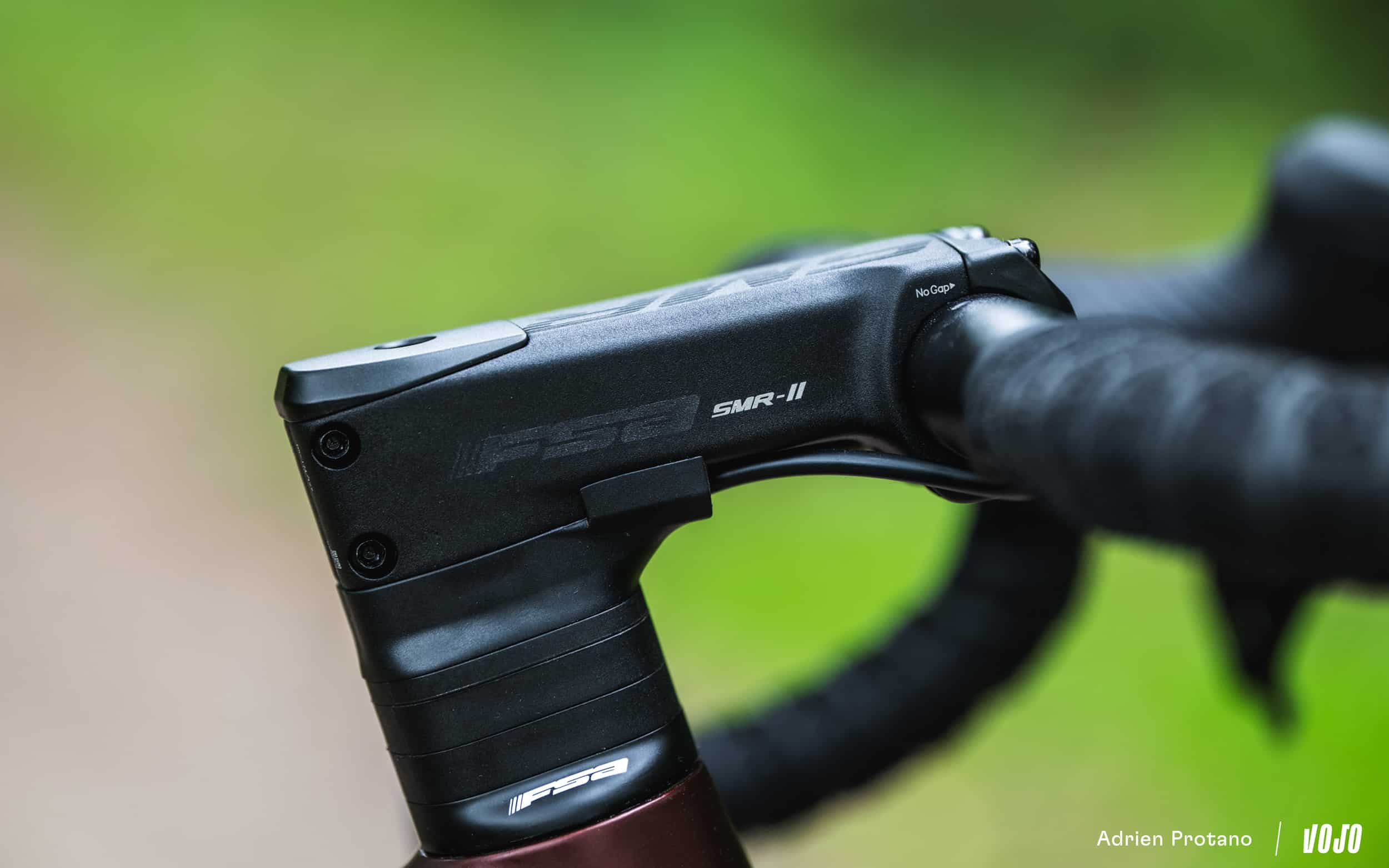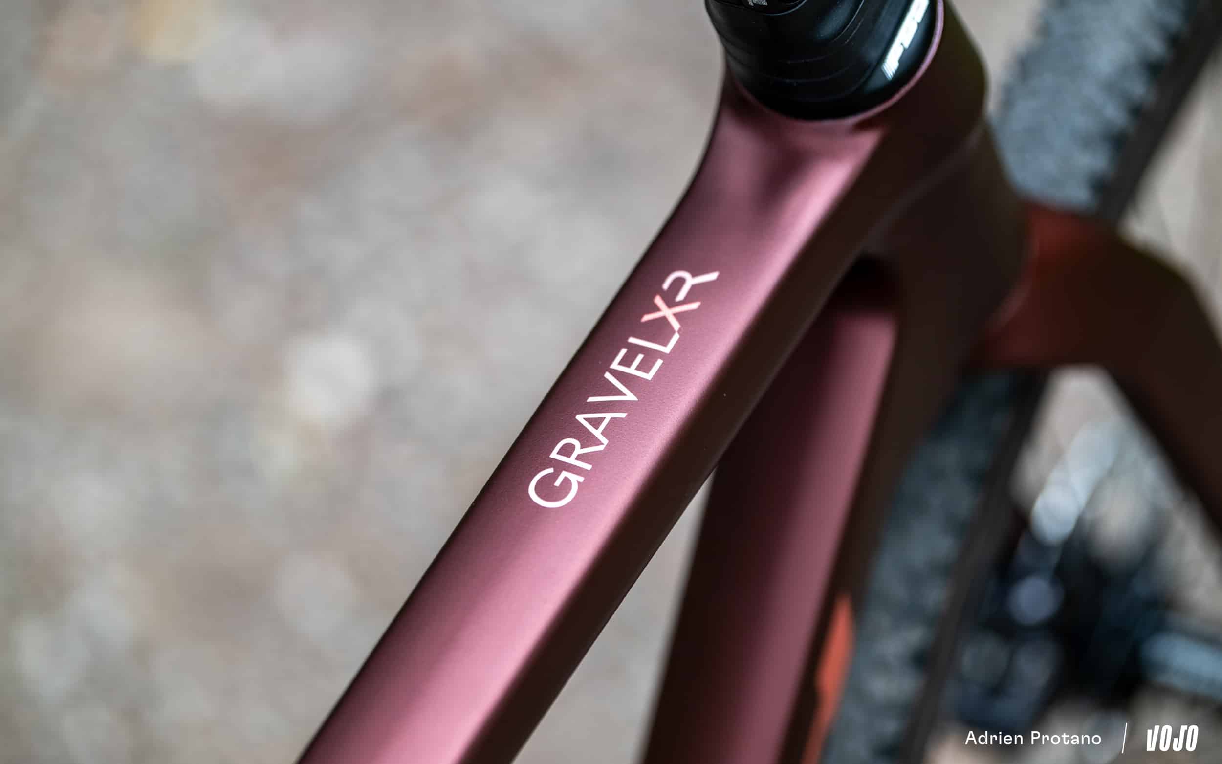 Comme son grand frère, le GravelX R est soigné visuellement et fait la part belle à l’intégration. Les gaines passent directement au sein du jeu de direction et de la potence FSA, tandis que le serrage de tige de selle est intégré au cadre. Impossible de rester indifférent face à ce look épuré et ces lignes agressives et marquées !