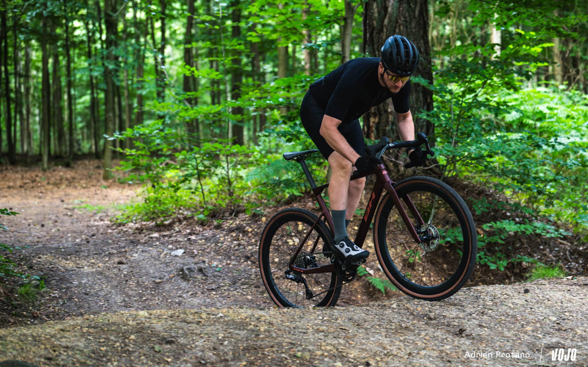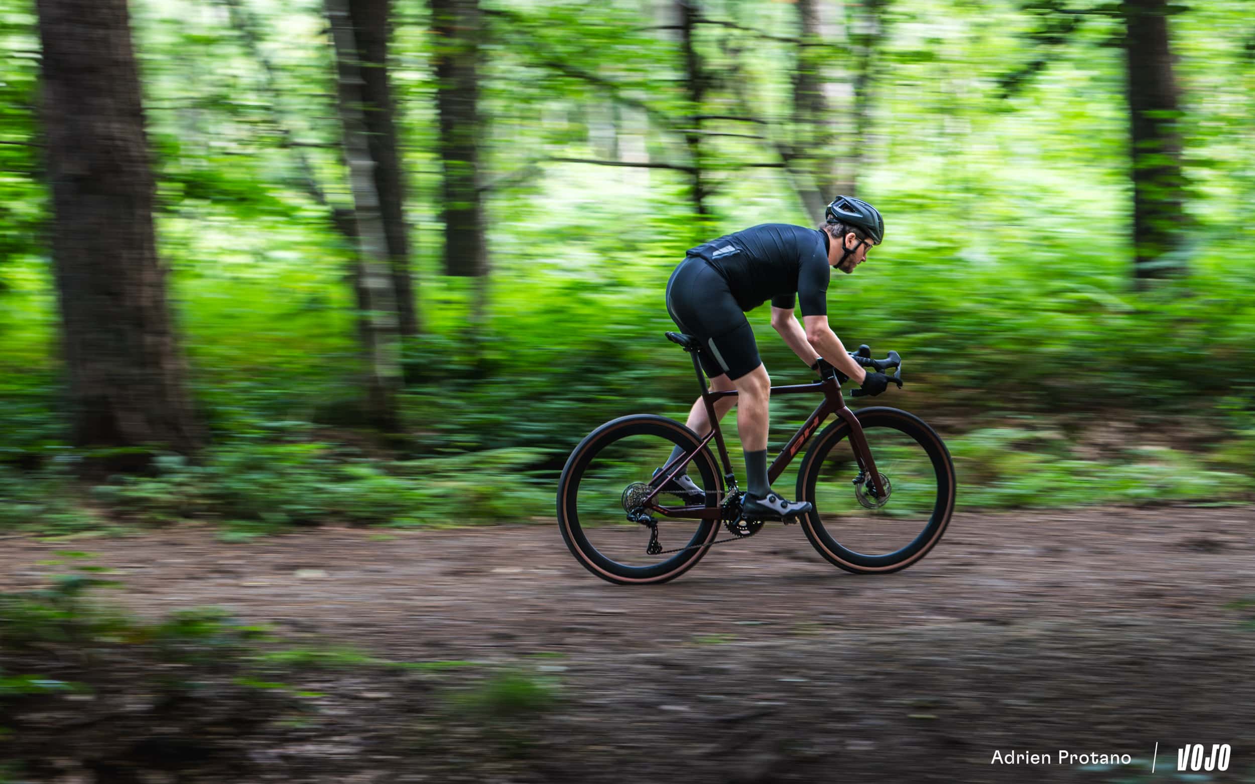 Exit le système SRS du gravel X pour filtrer les vibrations, ici on est sur un cadre classique fait pour envoyer du braquet sur des tracés plus roulants. Et, en plus d’avoir un vélo plus nerveux et ayant davantage de répondant face au changement de rythme, cela permet évidemment de gagner de précieux grammes. Bref, tout a été pensé pour l’efficacité et la performance sur ce GravelX R, et cela se ressent sur le terrain avec un vélo réactif dans les accélérations et facile à maintenir à haute vitesse.