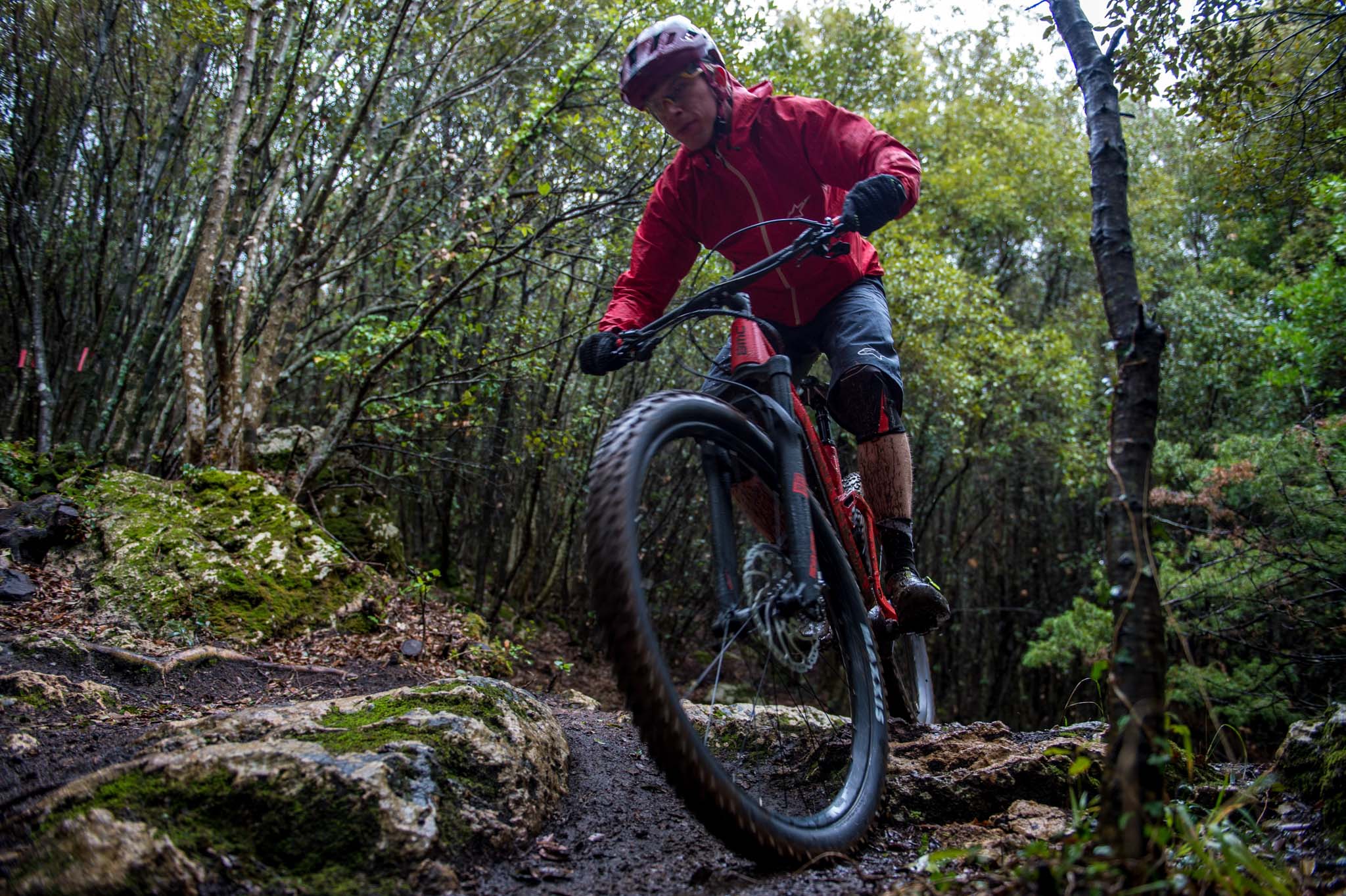 Direction les sentiers de Massa Maritima pour quelques tours de roues sur le BMC Speedfox AMP. C’est sous la pluie et sur un terrain très gras que nous découvrons la machine. Pas optimal, on vous l’accorde, mais il y a tout de même moyen de sentir la machine. Au pédalage, on est posé bien droit sur le vélo et on retrouve tout ce qui fait un bon vélo de all-mountain et de rando. Rien n’est trop extrême et on est bien posé pour enchaîner des heures en selle. La plateforme de pédalage est confortable et on retrouve un bon support après le SAG. Le moteur Shimano est fidèle à lui même et on adore son mode intermédiaire, que nous n’avons presque pas quitté de la sortie. L’autonomie est également très bonne et l’interface tout comme l’ergonomie de la commande sont connues et appréciées.