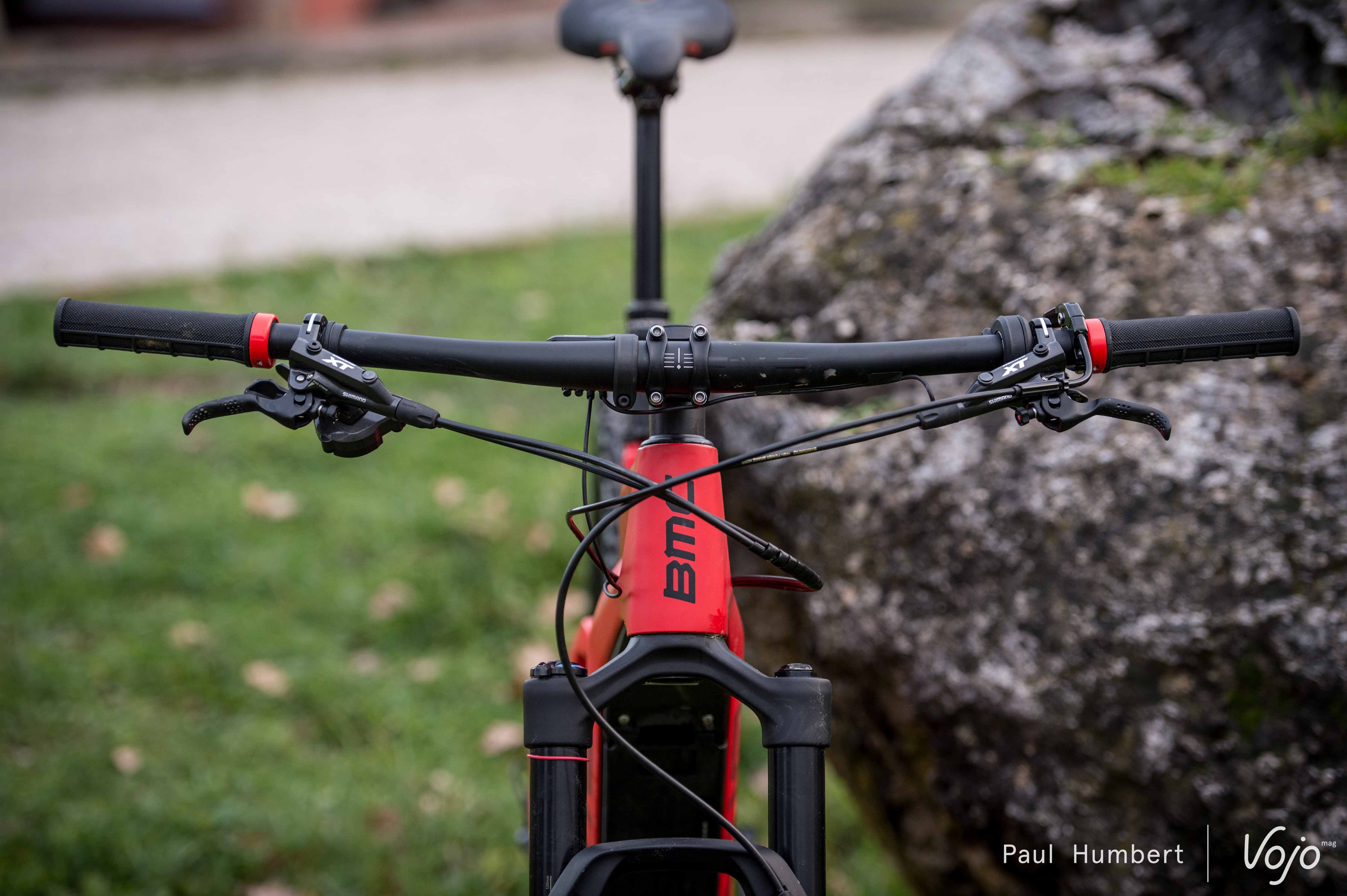 RaceFace s’occupe de la tige de selle et des roues avec sa gamme l’Aeffect. La tige de selle affiche 125mm de débattement et les jantes 30mm de largeur interne. Sur ces dernières, des pneus Maxxis Forekaster sont installés en section 2.35. Le poste de pilotage est quant à lui signé par BMC.
