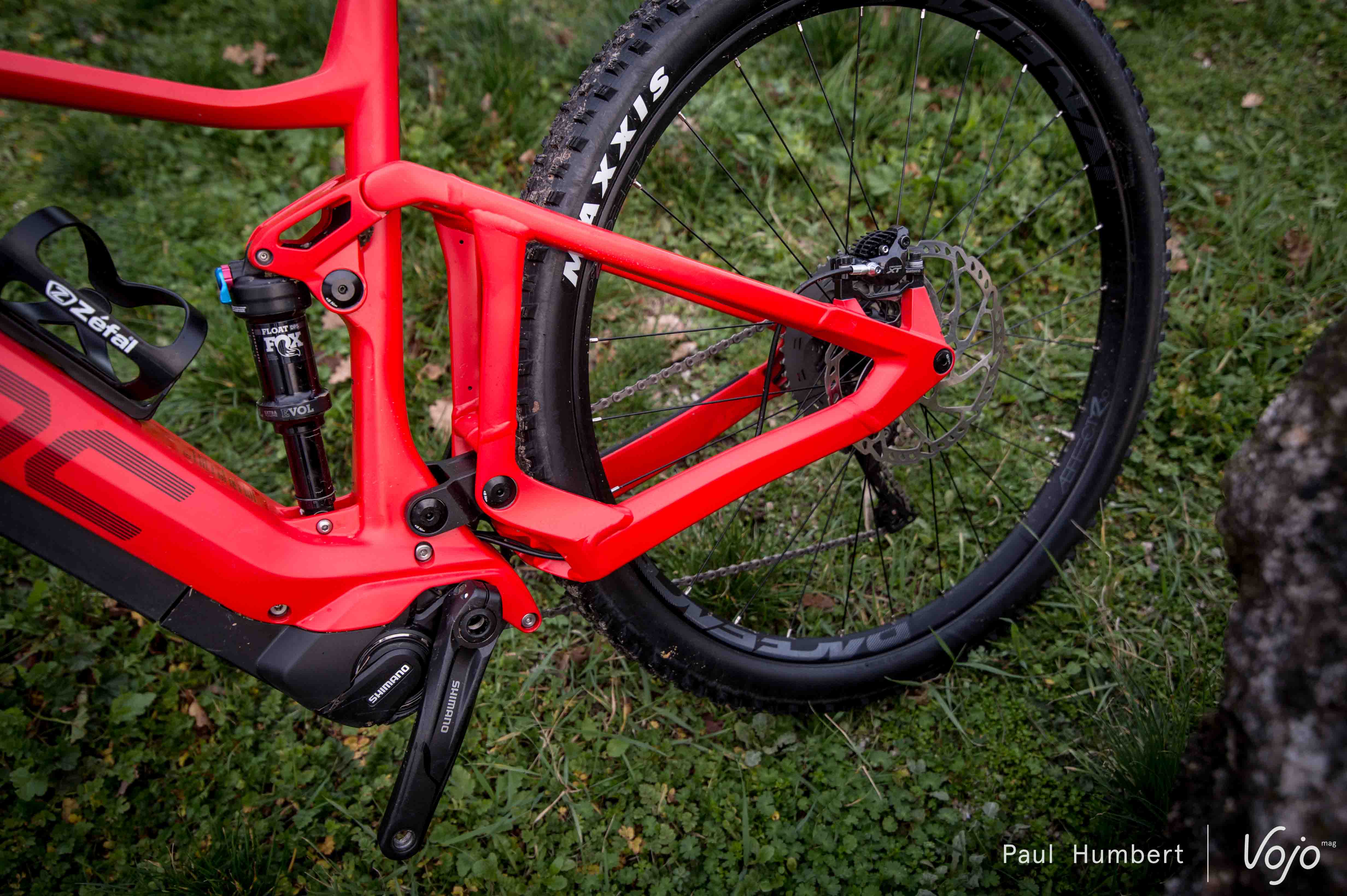 Le débattement est de 130mm à l’avant comme à l’arrière, soit 10mm de plus que pour le Speedfox classique, sans assistance.