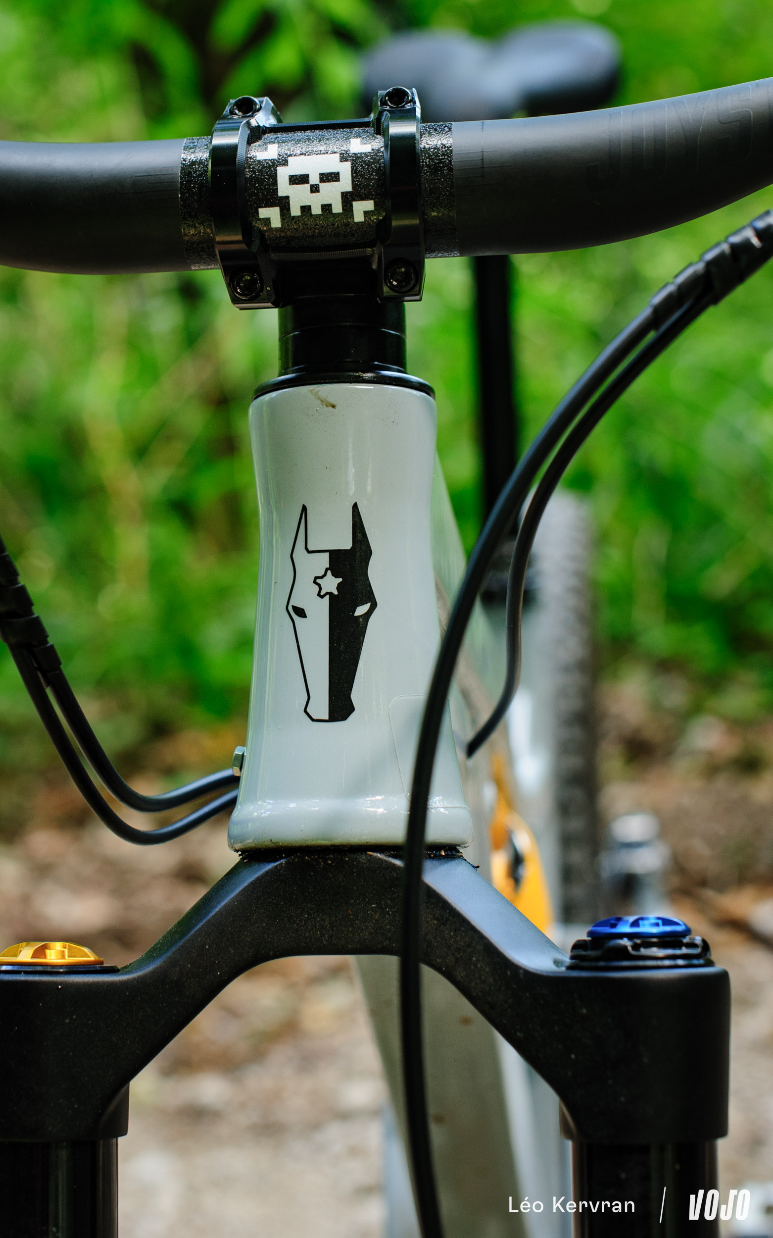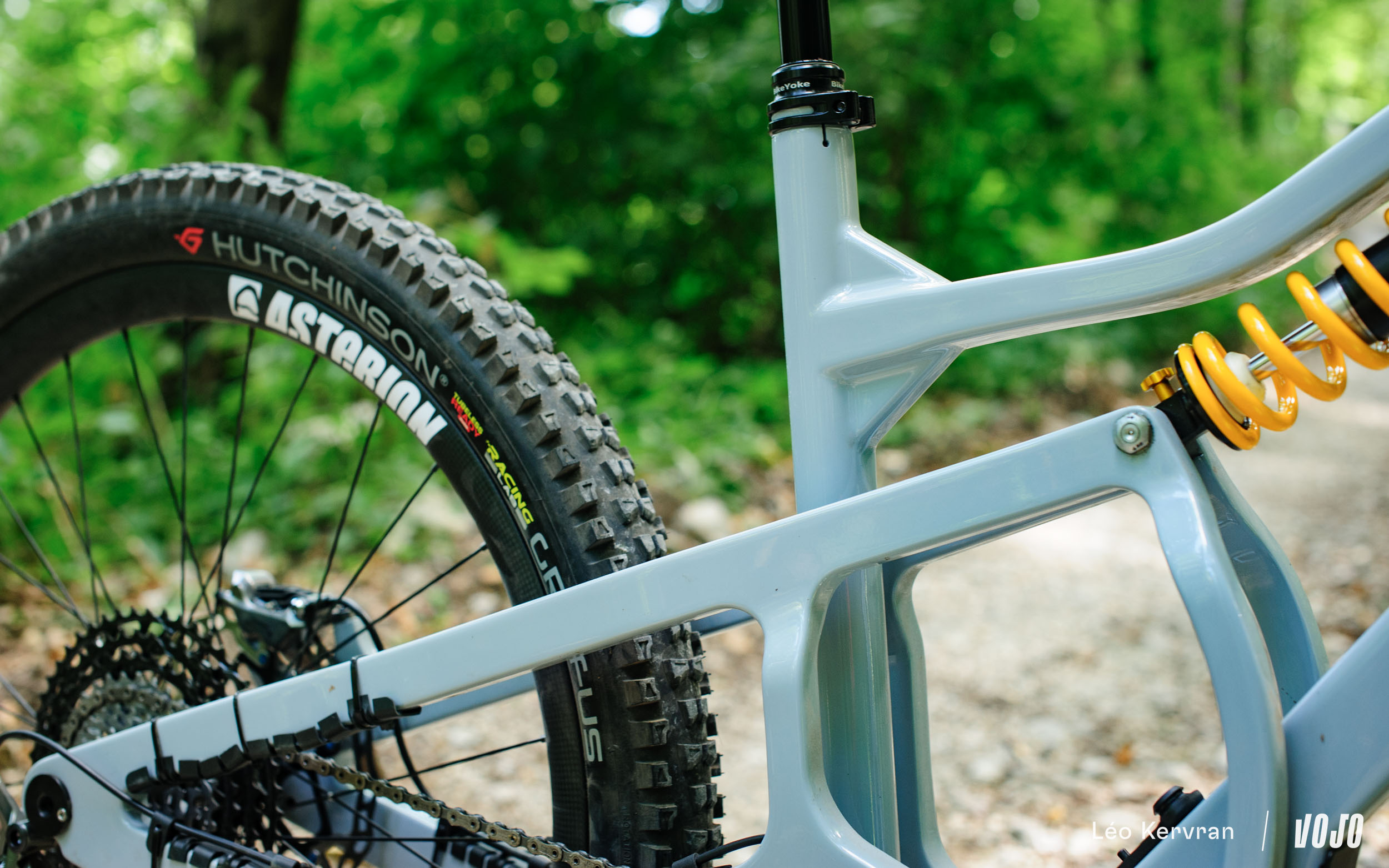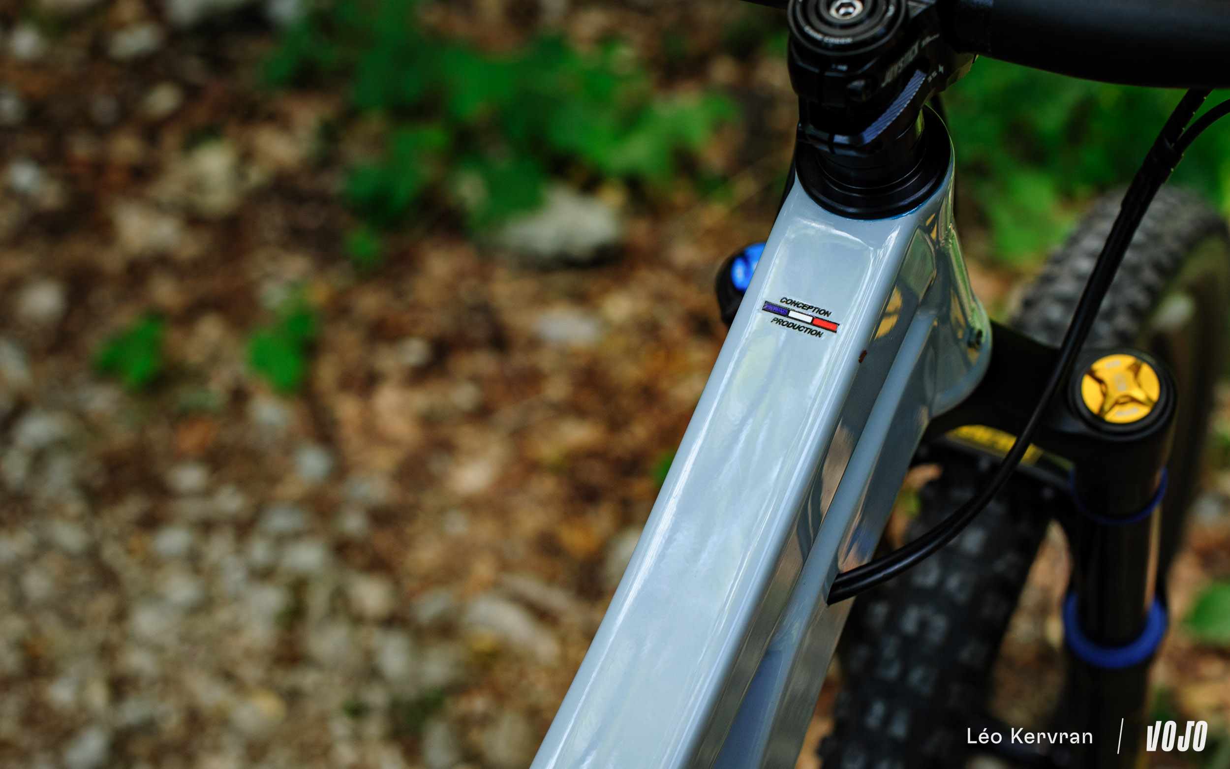 Et pourtant, cela s’est remarquablement bien passé. Il y a un véritable équilibre entre le débattement important (183 mm à l’arrière, 170 mm devant) et la géométrie plus sage (65° d’angle de direction, 464,5 mm de reach en taille L) et si on sent bien le côté « gros vélo » en s’installant sur la machine, on n’a pas non plus l’impression d’être sur un monster truck.