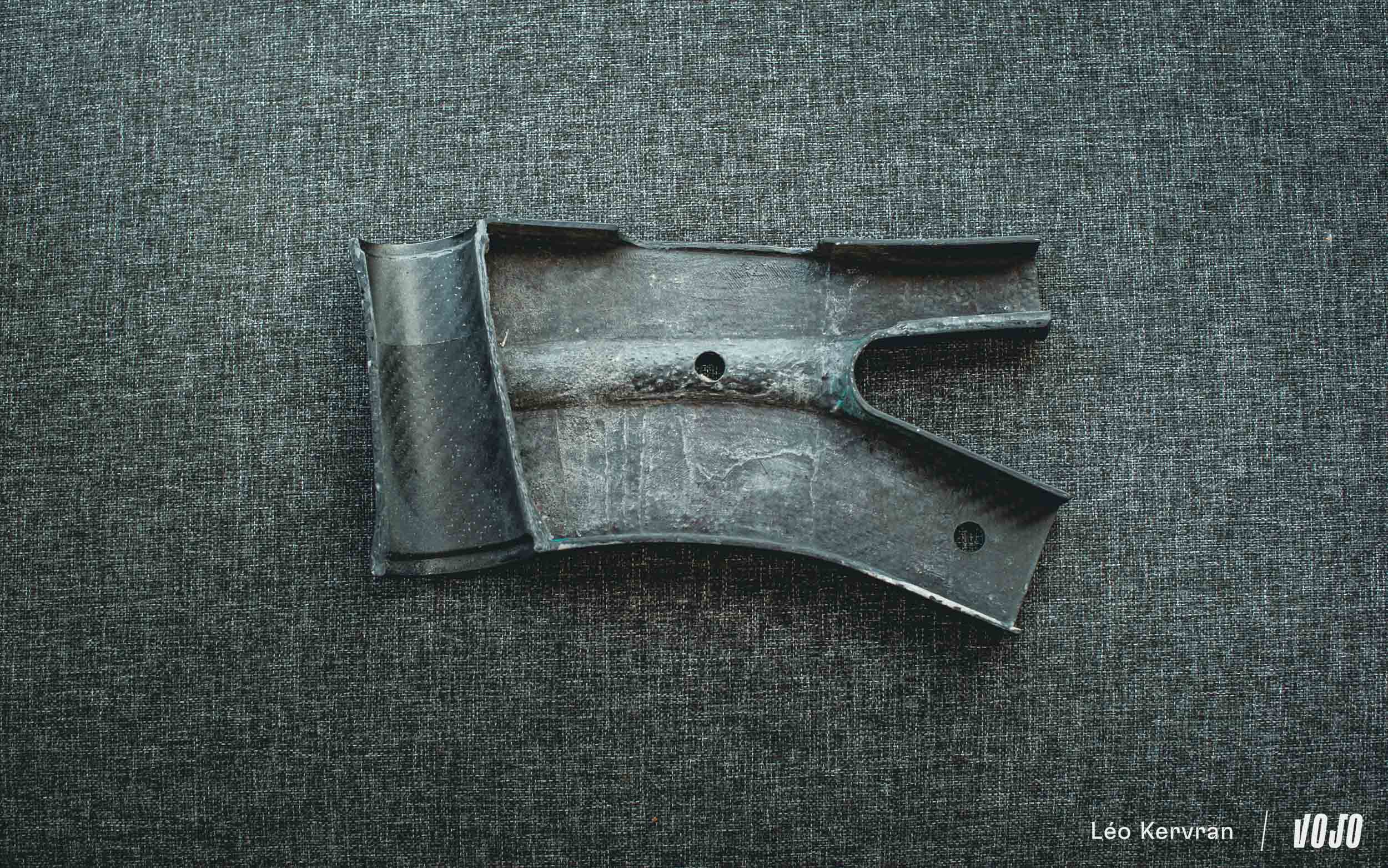 Il faut dire que les cadres Bucefal ne sont pas faits comme tous les cadres en carbone. Dominique Luce souhaitait quelque chose de particulièrement résistant (remarquez l’épaisseur des parois sur les photos ci-dessus), plus que les modèles dont on a l’habitude, et utilise ainsi un processus à base de cire plutôt que de baudruches ou de vessies gonflables.