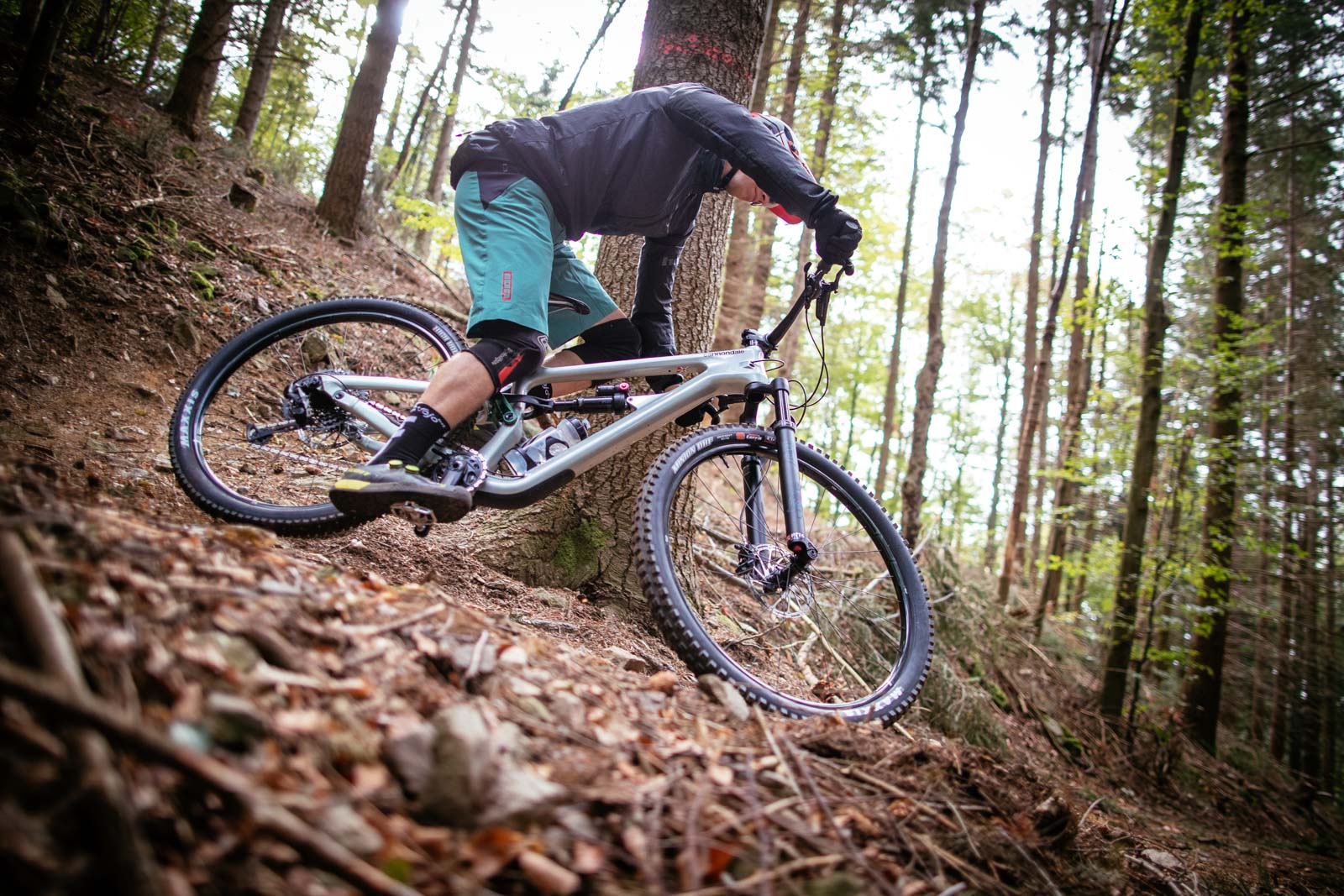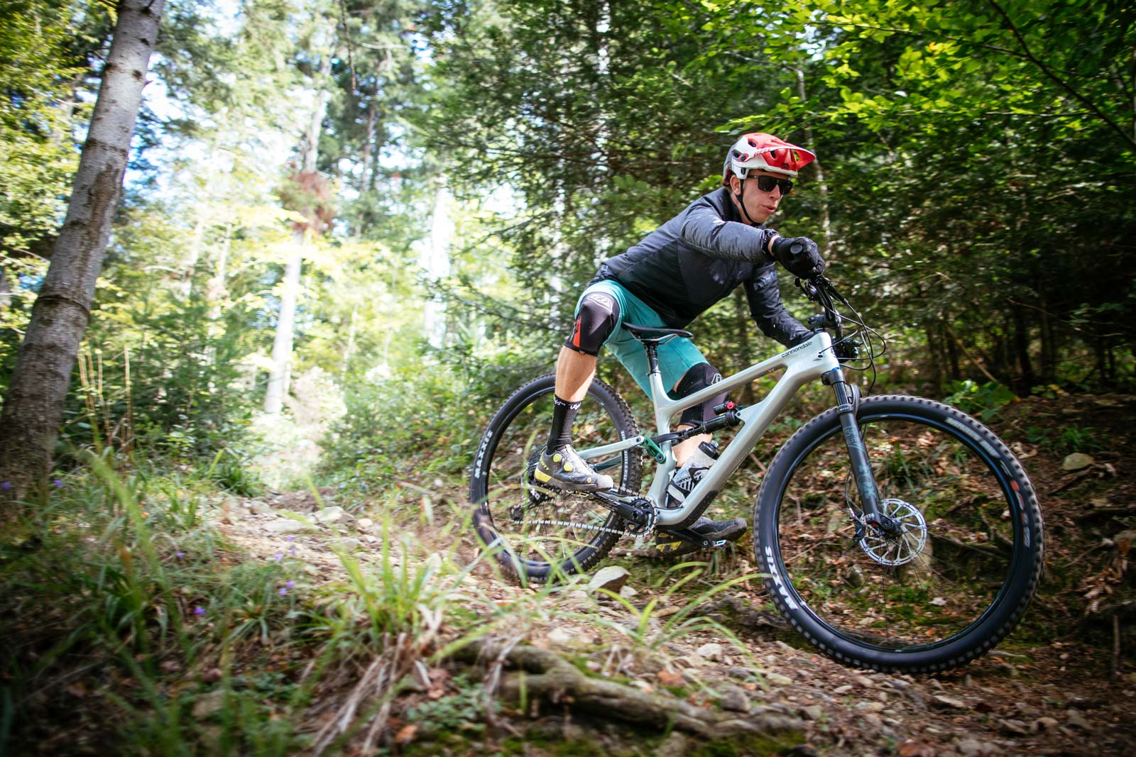 Cannondale équipe sa gamme avec des amortisseurs Fox mais aucun d’entre eux ne propose la technologie « Gemini », qui propose une variation du débattement. Le vélo a été jugé suffisamment bon pédaleur sans cette option, qui conviendra mieux aux grands débattements. On nous conseille d’ailleurs de régler le vélo avec un SAG de 25%.