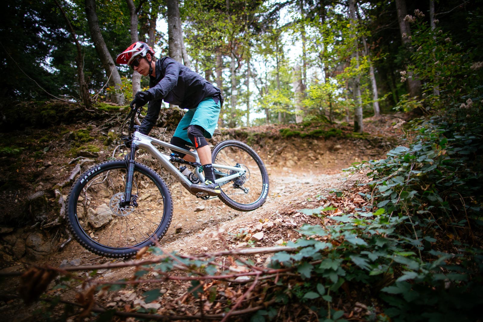 En descente, on oublie très clairement l’ancien Habit. Le vélo est toujours vif et joueur, mais il est bien plus capable et fun que son prédécesseur. On peut se permettre d’être brouillon et on vient sauter et chercher les mêmes trajectoires que sur un vélo d’enduro. On retrouvera d’ailleurs le célèbre « Canadian Trail », qui présente un grand nombre de sauts et de passages défoncés. Le confort est moins grand que sur un « gros » vélo, mais tous les autres repères restent les mêmes. Le vélo est rigide, toutefois, il conserve suffisamment de souplesse, surtout dans les roues, pour aller chercher du grip et du confort.