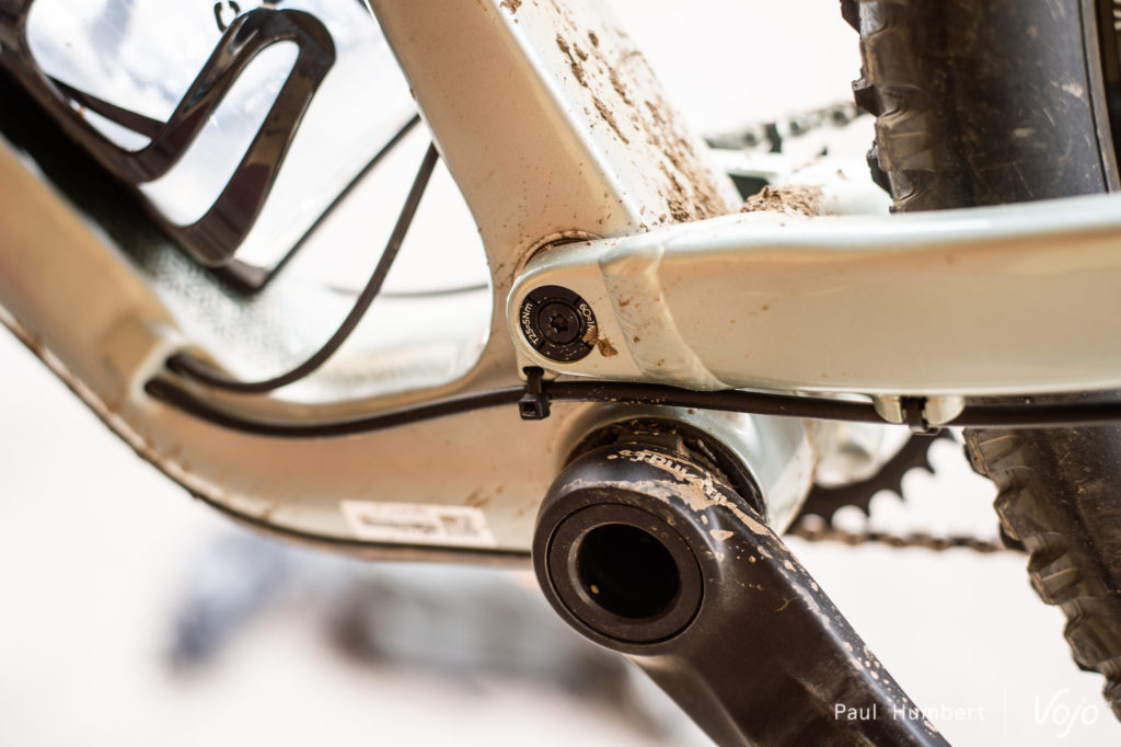 Ce Cannondale Habit a été très clairement optimisé pour le 29 pouces mais il reste adaptable au 27,5 Plus via le basculement d’un petit « flip chip ».